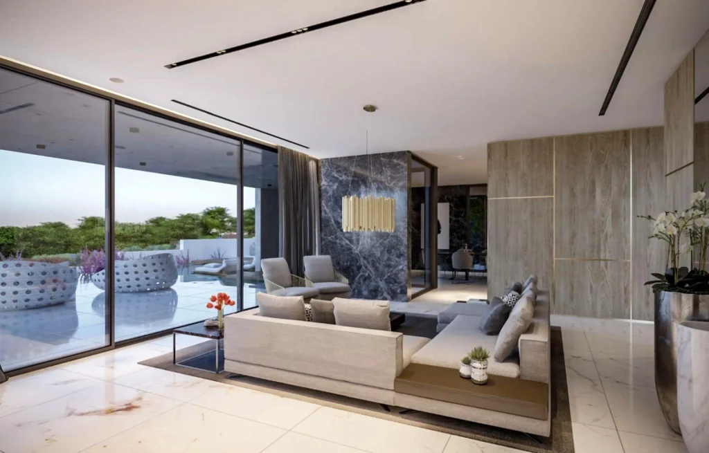 A dedicated wellness level offers a private indoor pool, gym, massage room, sauna, and lounge area with changing facilities. Additional highlights include a TV area, maid’s room, and utility room. This villa is a true expression of contemporary luxury, designed for those who demand both comfort and distinction.