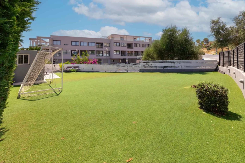 The villa unfolds across two levels, thoughtfully designed to meet the needs of contemporary living. The ground floor features a spacious open-plan living and dining area, a modern kitchen, a TV room, and a guest toilet. On the upper level, three bright bedrooms provide comfort and tranquility, with two bathrooms complementing the layout. The residence is fully furnished, well maintained, and equipped with air conditioning throughout, as well as petrol central heating.