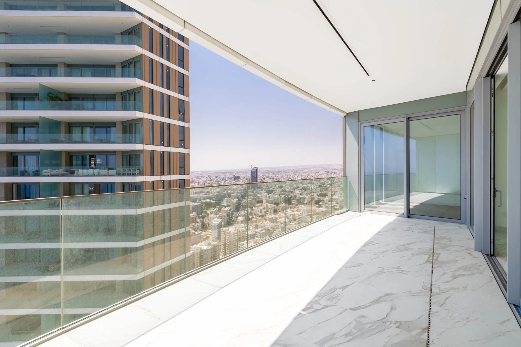 Rising above Limassol’s seafront, the East Tower of Trilogy offers a collection of residences defined by light, space, and panoramic sea views. Set within the iconic landmark, this refined three-bedroom apartment captures the essence of modern Mediterranean living. With generous interiors and a spacious sea-facing veranda, it strikes a perfect balance between comfort and elegance.