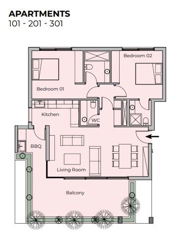 The design emphasizes contemporary elegance, with floor-to-ceiling windows, expansive verandas, and refined architectural details. Each apartment has been thoughtfully planned to maximize comfort and functionality, featuring two bedrooms, bright interiors, and high-quality finishes. Penthouses crown the building with spacious rooftop terraces and private pools, offering a level of exclusivity rarely found in the area.