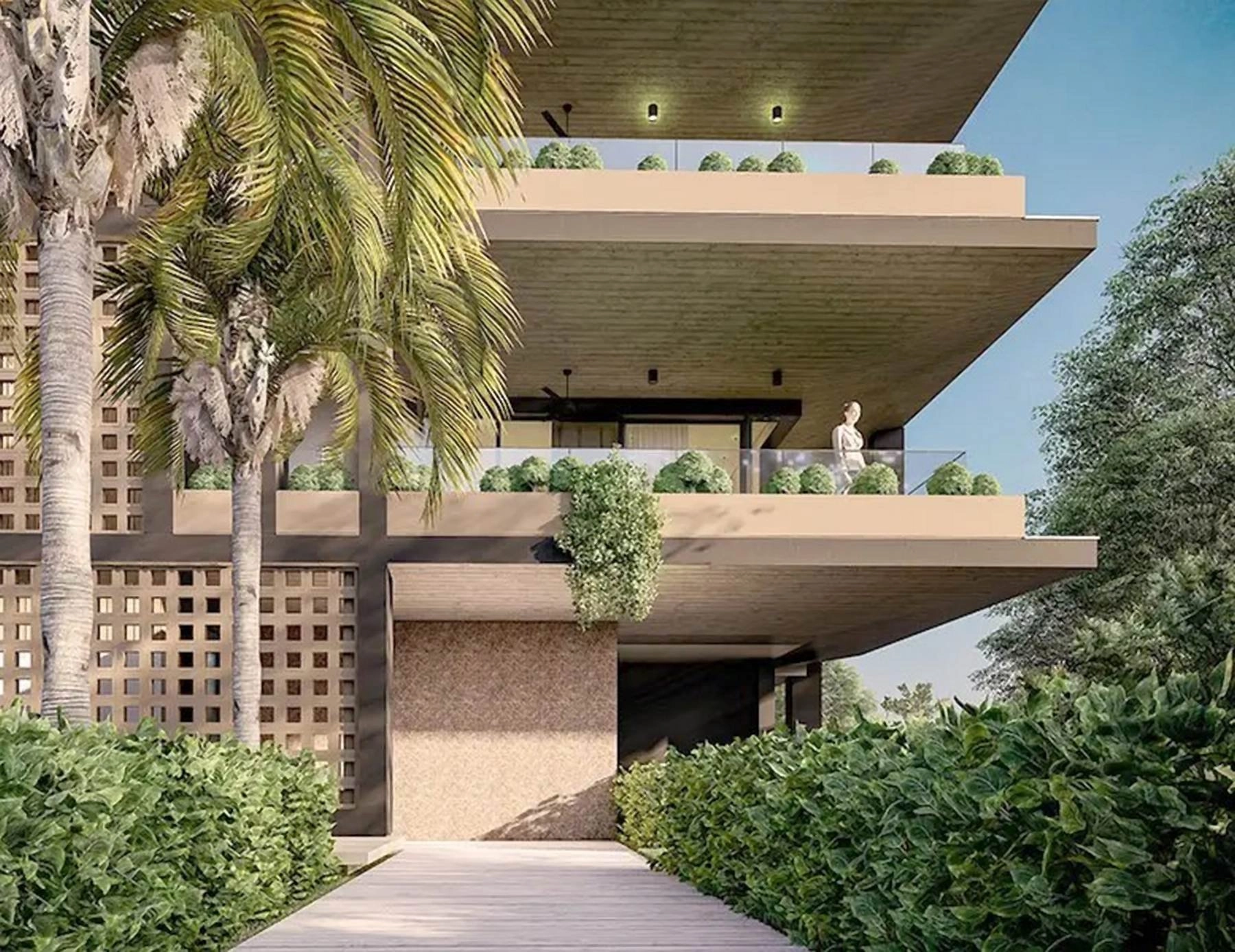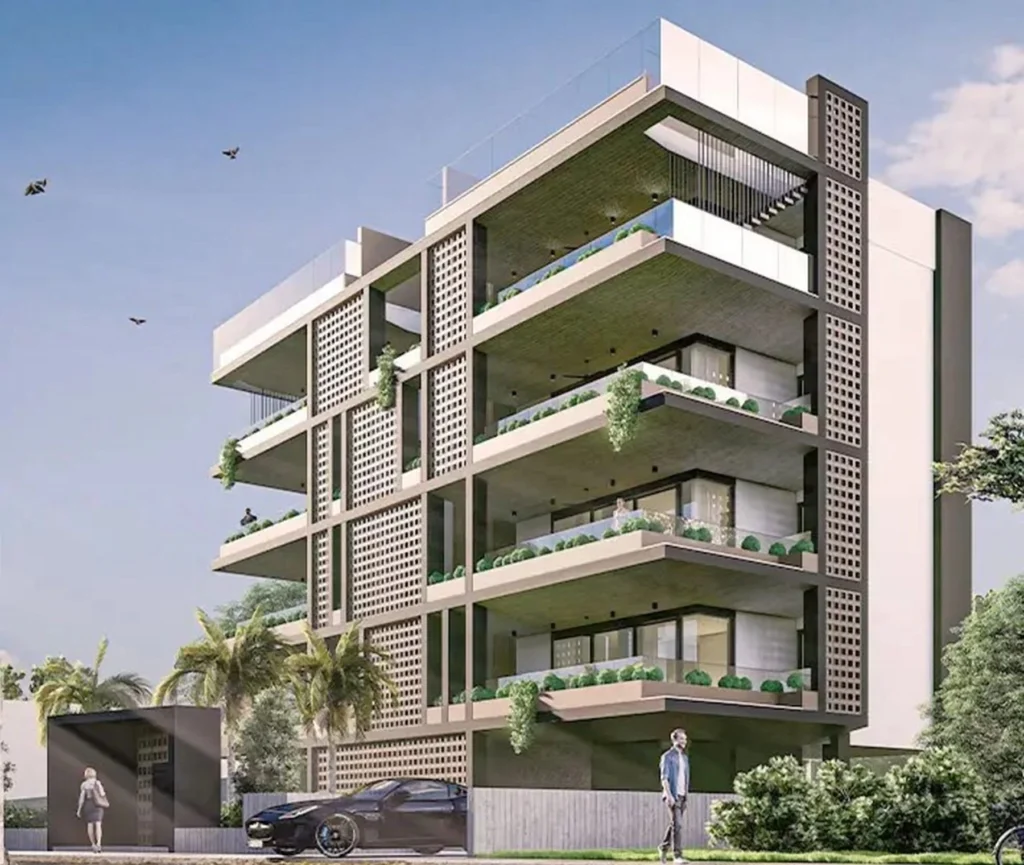 The design emphasizes contemporary elegance, with floor-to-ceiling windows, expansive verandas, and refined architectural details. Each apartment has been thoughtfully planned to maximize comfort and functionality, featuring two bedrooms, bright interiors, and high-quality finishes. Penthouses crown the building with spacious rooftop terraces and private pools, offering a level of exclusivity rarely found in the area.