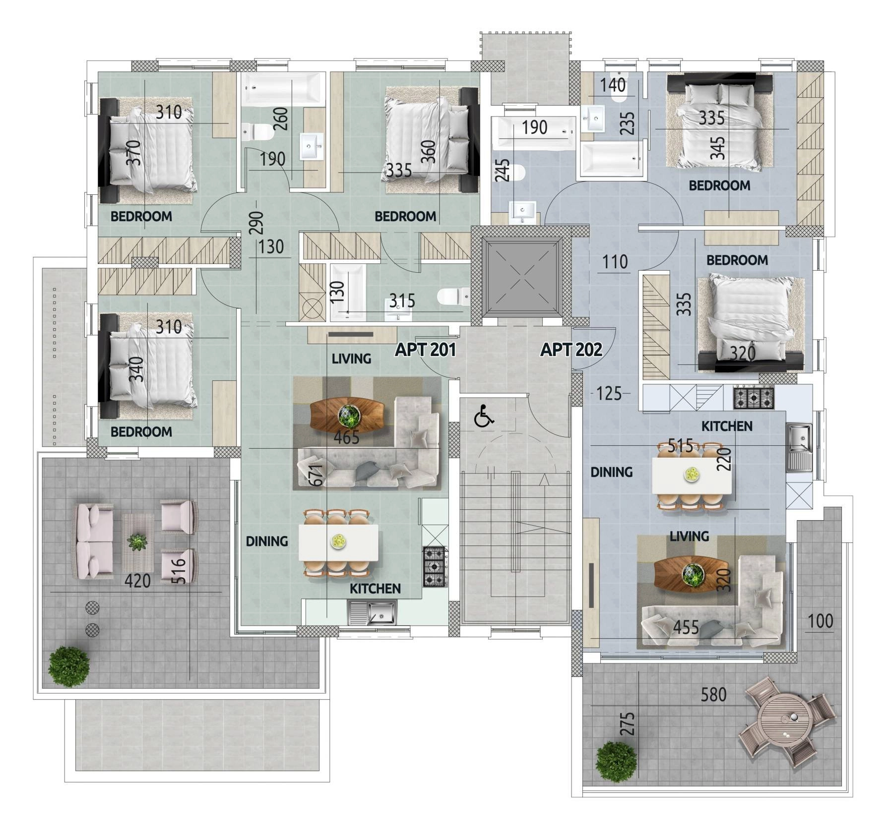 The development presents stylish 2- and 3-bedroom apartments, along with an exclusive penthouse boasting spacious, thoughtfully designed interiors. Each residence features welcoming bedrooms and open-plan layouts that create a warm yet sophisticated ambiance. Premium finishes, including upgraded thermal aluminum windows for excellent insulation, highlight the attention to detail, while modern kitchens with sleek cabinetry and laminate worktops merge practicality with contemporary elegance. Expansive balconies with glass balustrades and a private rooftop terrace in the penthouse invite residents to unwind and enjoy views.