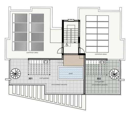 A highlight of the project is its two exclusive penthouses. One offers two bedrooms with a private rooftop veranda, while the other, with three bedrooms, features an expansive roof terrace complete with its own swimming pool — a rare privilege in this area.