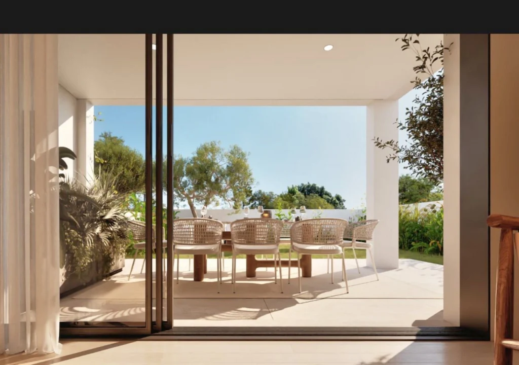 Each home features three well-proportioned bedrooms, including a master suite with its own bathroom, complemented by an additional family bathroom and a guest toilet. The open-plan living and dining areas create a bright, inviting atmosphere, enhanced by large windows that frame the private garden. Thoughtful details include a dedicated laundry area, provisions for air-conditioning and heating throughout, and an energy-efficient solar system that ensures long-term sustainability.