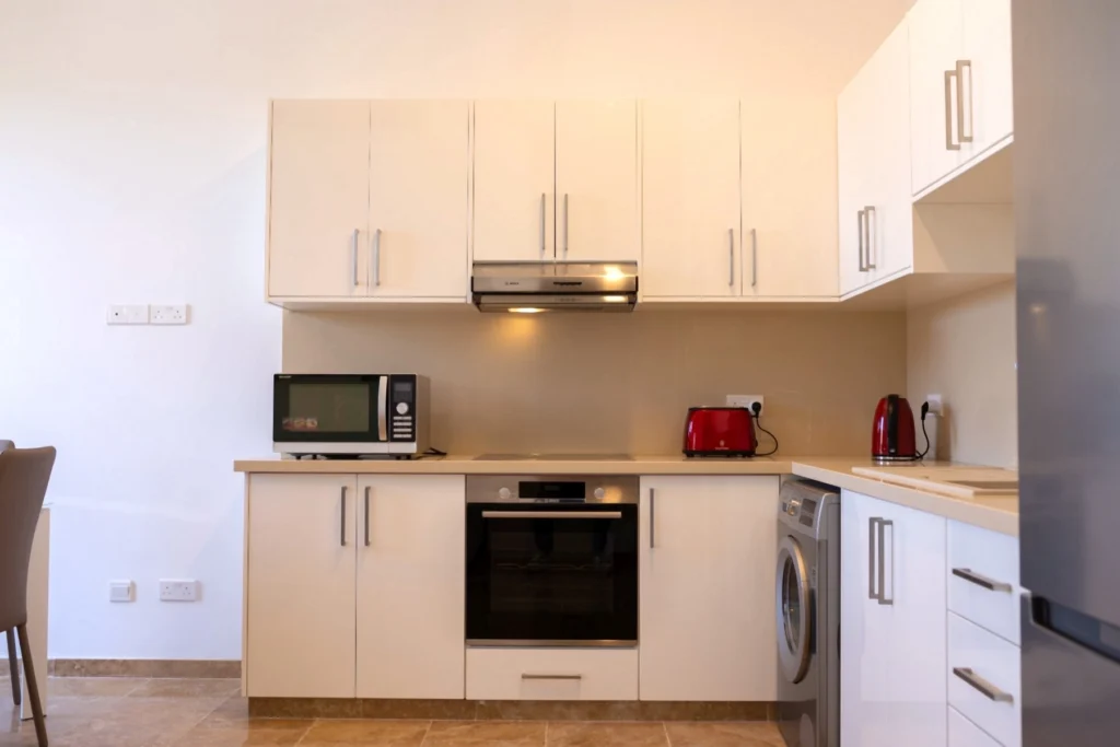 Located in the peaceful coastal area of Kissonerga, this rare two-bedroom duplex apartment offers a perfect blend of coastal living and modern comfort. Just a short walk from the sea and the charming sandy cove of the renowned Queens Bay Hotel, it offers the perfect setting for a relaxed Mediterranean lifestyle. Situated on the second line from the sea, it ensures both privacy and easy access to the beach. Shops, cafes, and restaurants are within walking distance, while both Pafos centre and the famous Coral Bay beaches are only a few minutes’ drive away.