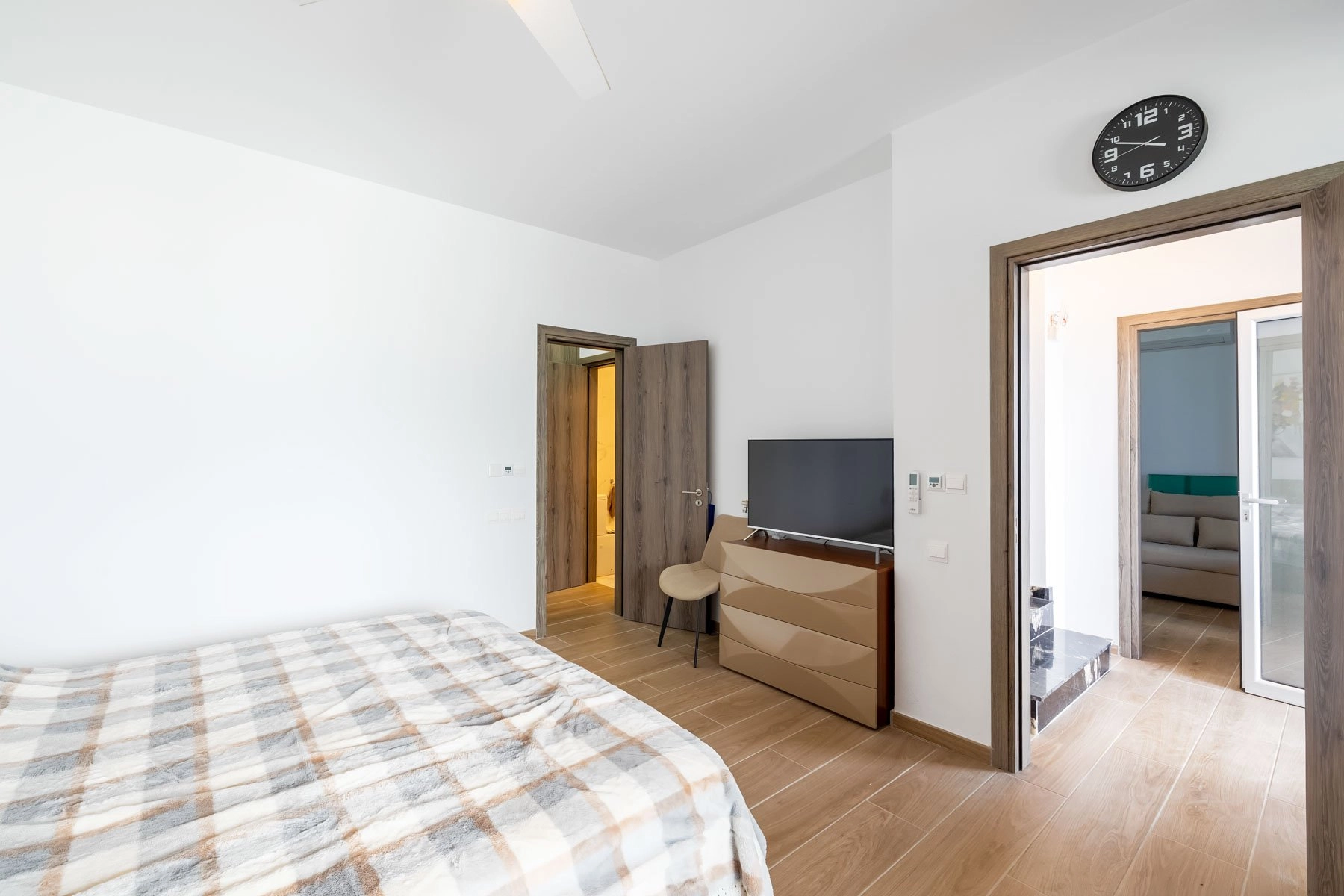 Outdoors, the house boasts a private swimming pool with a cozy lounge area, creating the ultimate space for relaxation and entertainment. A spacious roof terrace further enhances the experience, offering refreshing breezes and spectacular sunsets.