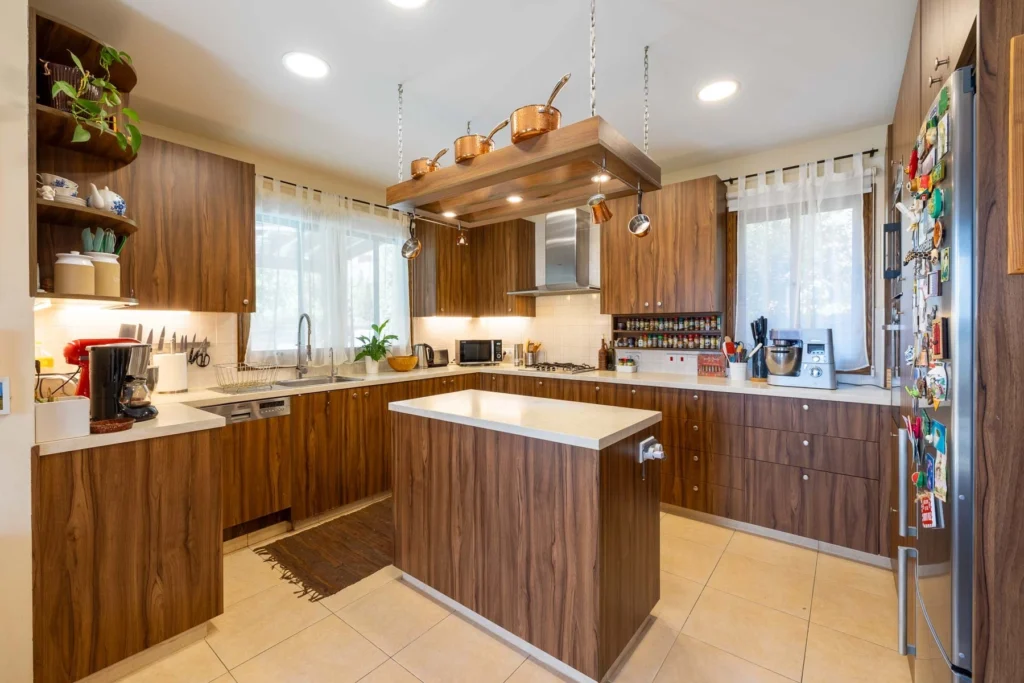 This Mediterranean-style villa in Moutayiaka, Limassol, offers the perfect blend of privacy, comfort, and convenience. Nestled in a quiet residential neighborhood, the four-bedroom, four-bathroom home is designed for both relaxed family living and entertaining.