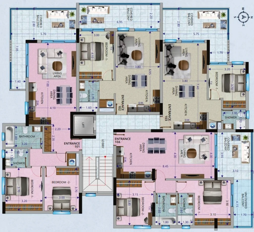 Residents will benefit from covered parking, private storage rooms, and a modern video intercom system for added security. The building’s sleek architectural design, defined by clean lines and stylish details, highlights its modern character and superior construction standards.
