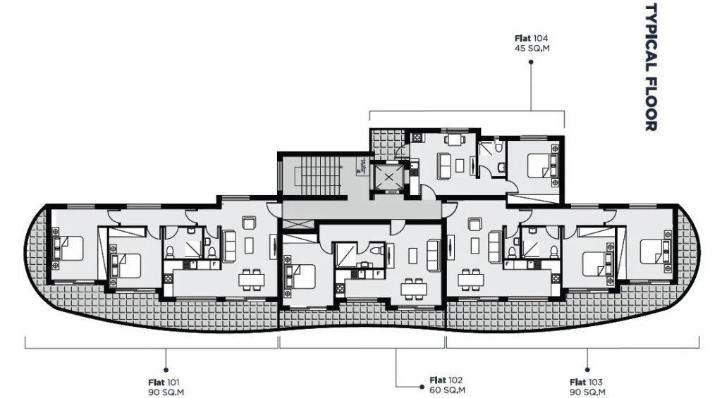 The three-storey gated development features cozy one- and two-bedroom apartments, each designed with modern aesthetics and functional layouts. Spacious covered verandas extend the living space outdoors, creating the perfect spot for relaxation and leisure.