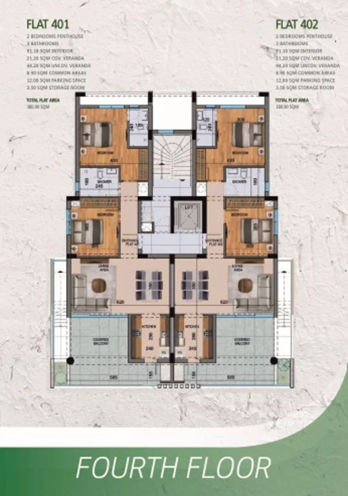 Two Bedroom Penthouse Apartment For Sale in Larnaca Town Centre – Title Deeds (New Build Process) Last remaining 2 Bedroom penthouse apartment !! – 401 Situated in the heart of Larnaca, these apartments offer premium accessibility to essential amenities and only a 7 Minute drive to the sea and 9 Minutes to the nearest beach. This is a residential four-story building of eight luxurious 2 Bedroom apartments. There are 2 Penthouse apartments with spacious roof terraces and views of Larnaca. - Master bedroom with ensuite and fitted wardrobes - 1 Bedroom with fitted wardrobes - Open plan living – dining – kitchen area - Family bathroom - Shower room & W/C on the roof terrace - Unfurnished - Provisions for air conditioning - Double glazing - Roof terrace - Private parking - Storage room - Internal 91 m2 - Covered veranda 21 m2 - Roof terrace 44 m2 - Parking 12 m2 - Storage 3 m2 - Communal fees TBC - Close to local shops and amenities - 7 Minutes to the sea - 9 Minutes to the beach - 9 Minutes to the Land of Tomorrow Event Venue - 17 Minutes to Larnaca International Airport - Suitable For Cyprus Permanent Residency – Fast Track - Subject to VAT - Energy Efficiency TBC Larnaca Larnaca is the home of Cyprus’ main International Airport, close to the Salt Lake area, a place where you can watch Swan’s and Flamingo’s that live in the lake. On its coastal seafront, the cafes and restaurants are peaceful. On the edge of Larnaca Bay the palm-lined seafront of Larnaca town bustles with cafes, tavernas, shops and bars. Historic charm is lent to the scene by its fortress castle, now used as the town’s summer cultural centre. Larnaca is an excellent base from which to get to know the central and eastern section of Cyprus, and its proximity to the International Airport and a number of luxury hotels that have been developed along its beautiful sandy beaches make this a popular holiday choice. Larnaca is the modern gateway to Cyprus, known for such sights as the beautiful St. Lazarus Church and leisurely Palm Tree Promenade. Work has now started on the vast project of the “Land of Tomorrow that will transform one of the largest areas of Larnaca, improving the image not only locally but also Cyprus at the international level. The Land of Tomorrow project will provide new and important investment opportunities in the areas of entrepreneurship, tourism, culture, innovation and the environment in Cyprus. ———— * Title Deeds (New Build Process) * Penthouse with Roof Terrace * Short Drive to the Sea & Beach * Suitable for Cyprus Permanent Residency – Fast Track * Subject to VAT * Off Plan – Completion December 2027 * Energy Efficiency TBC Larnaca Town Centre Larnaca Town Centre County: Larnaca Sale Type: For Sale Ref #: STE016N2P