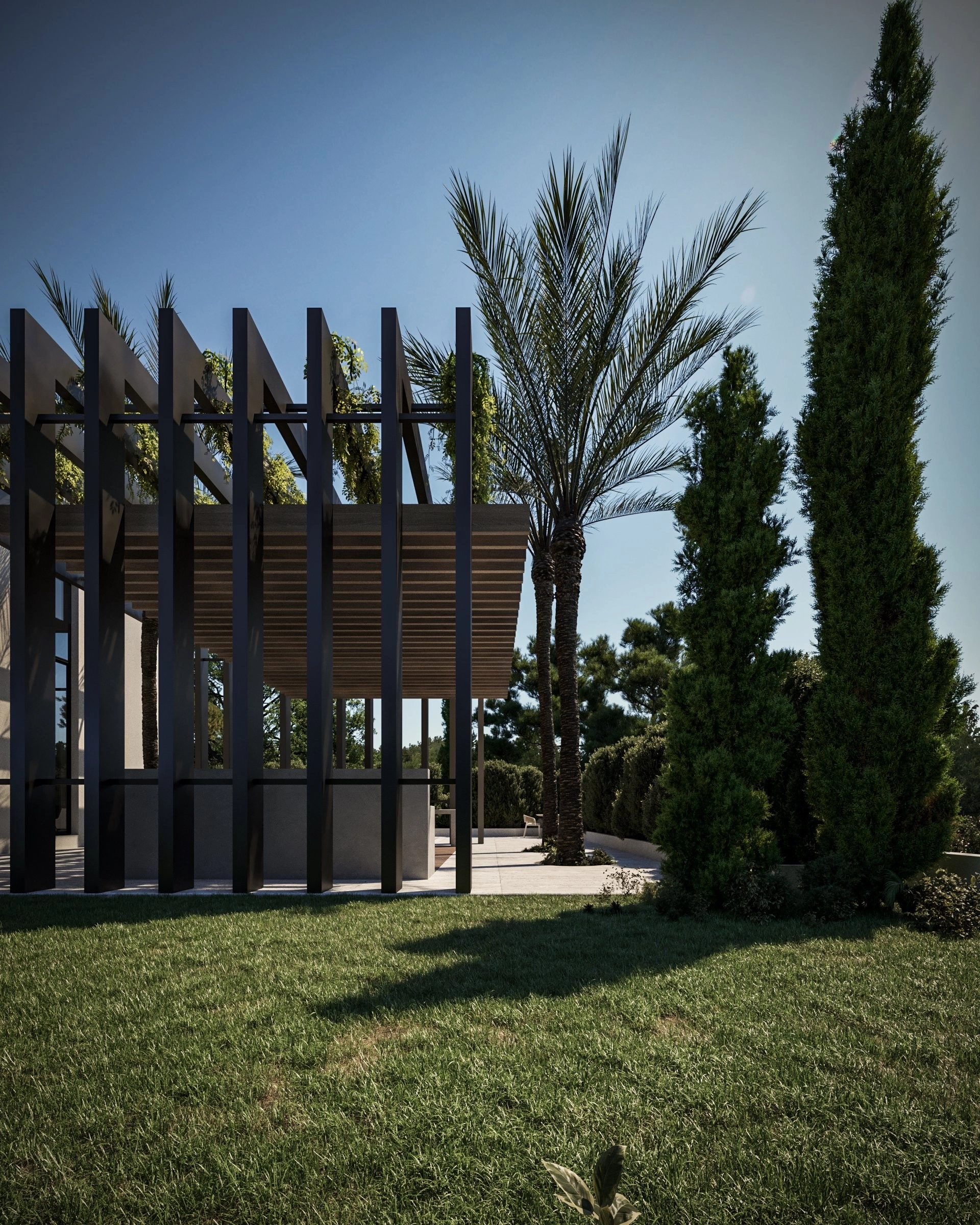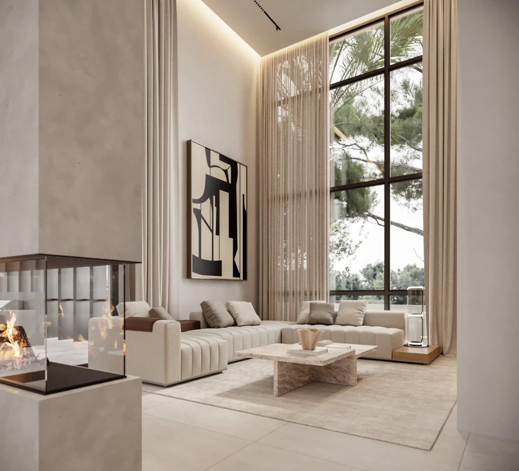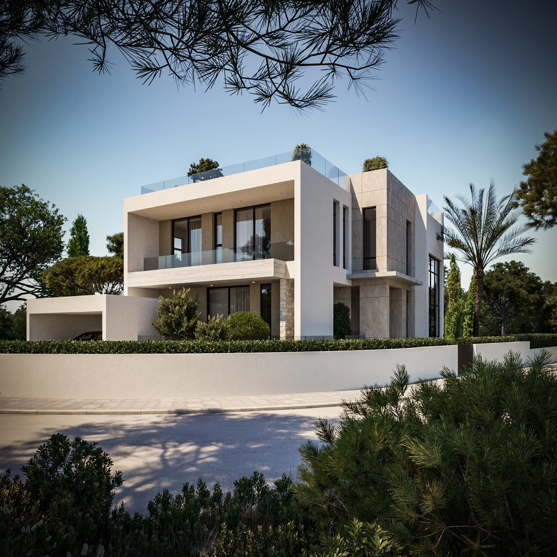This luxury villa is located in Moni, on a hilltop offering panoramic views of the sea and mountains. The residence features three bedrooms with en-suite bathrooms, a guest room, and two office spaces. A separate service area includes an additional bedroom, gym, and sauna. The property also offers two swimming pools, a rooftop garden, underfloor heating, and solar panels. The location ensures a peaceful environment just 6 km from Limassol’s coastline, hotels, and restaurants. The main features of the project and the units: 4 bedrooms with en-suite bathrooms Guest room 2 office spaces 2 swimming pools Separate service area with extra bedroom Gym, jacuzzi, and sauna Roof garden with panoramic views Underfloor heating Elevator Solar panels and alternative energy use 24-hour security Located 6.6 km from the sea The project has an EPC certificate with “A” energy efficiency rating.