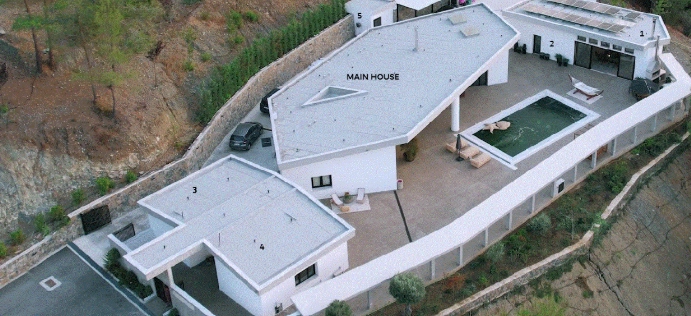 Spacious 250 sqm single-level villa with high ceilings, featuring 4 Bedrooms with private en suits, guest toilet and a large ergonomic kitchen with built in mechanisms. On the same 13,156 sqm Plot, 2 fully independent guest rooms with private bathrooms. Large outdoor Bbq area with excellent ventilation and moutain view, plus outdoor bar with spacious dinning .