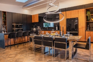 AREA 1 – big kitchen, living room and dining area with fireplace – 55m2