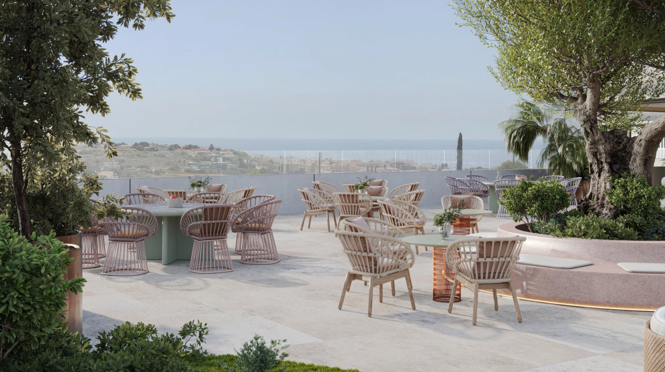 The project is situated in a picturesque location with stunning sea views, just 5 minutes away from the best beach in the Chloraka area and 10 minutes from the center of Paphos. It’s the perfect location for comfortable living, with nearby shops and supermarkets, parks and promenades, a private international school and a nursery.