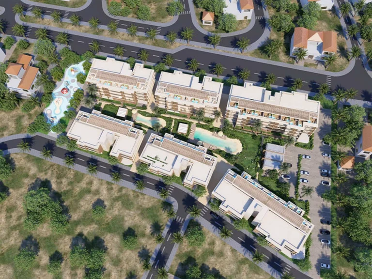 Apartments for sale in a super-modern gated complex in the area of Pyla, Larnaca. The complex will have swimming pools, gardens, playgrounds, and a gym. Just a 4-minute drive to the cleanest beaches. Two minutes to the highway with direct access to the center of Larnaca, Nicosia, Limassol and Ayia Napa. It is also a 4-minute drive from British University of Central Lancashire.