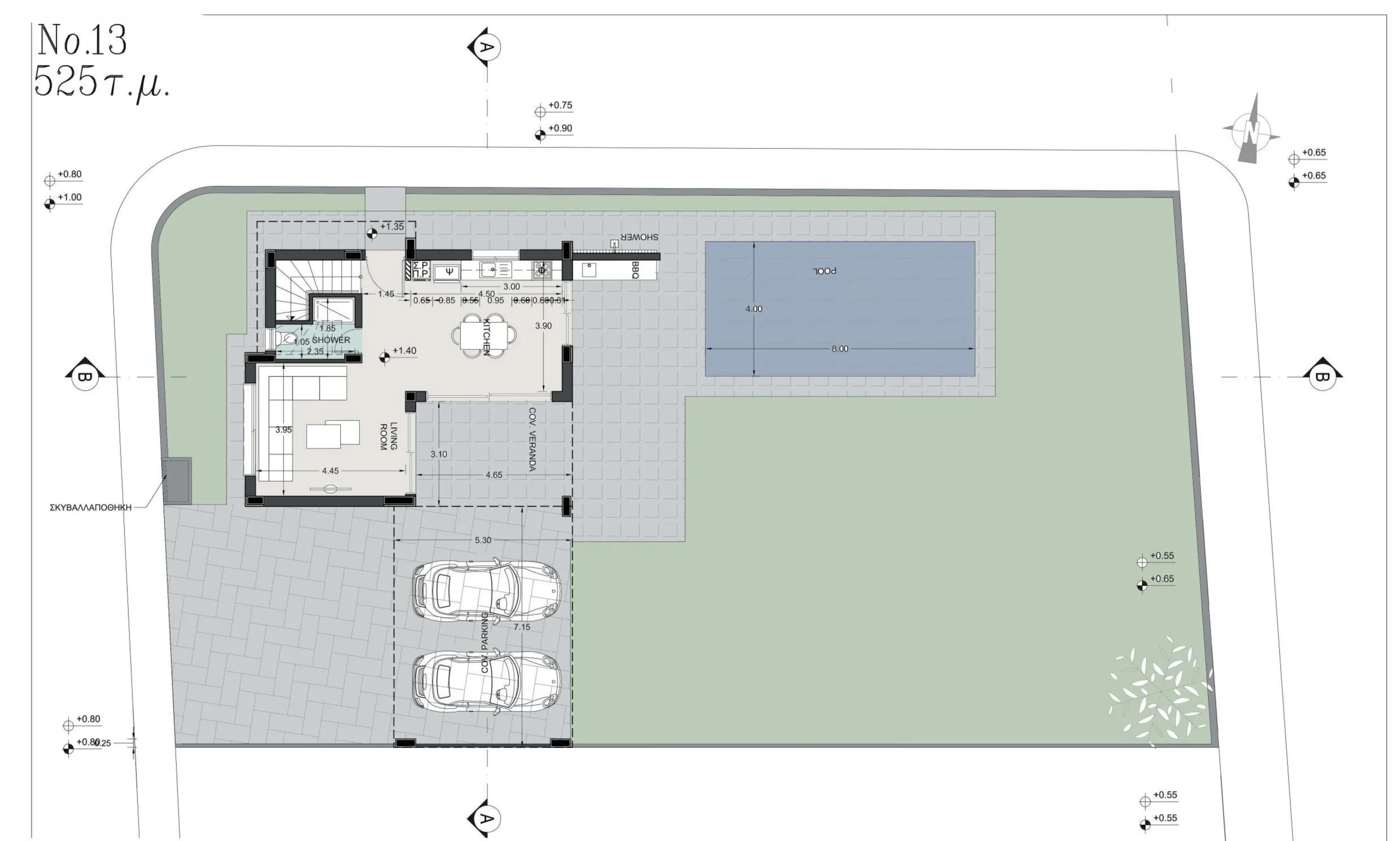 • Plot area: 525m²
