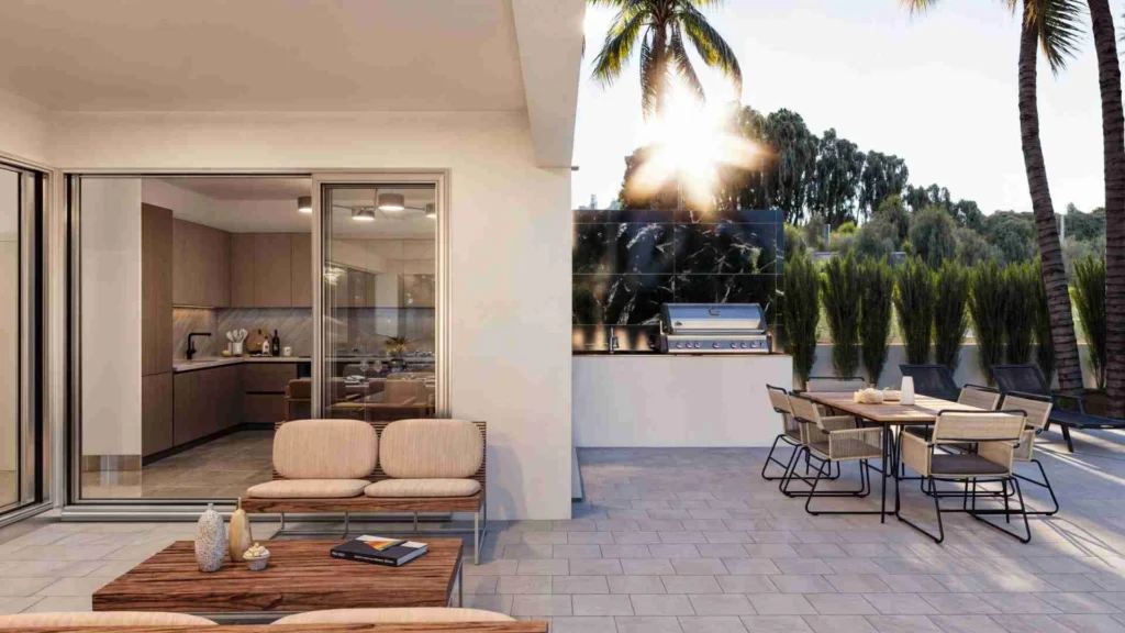 • Open-plan living, dining, and kitchen area with seamless access to outdoor spaces