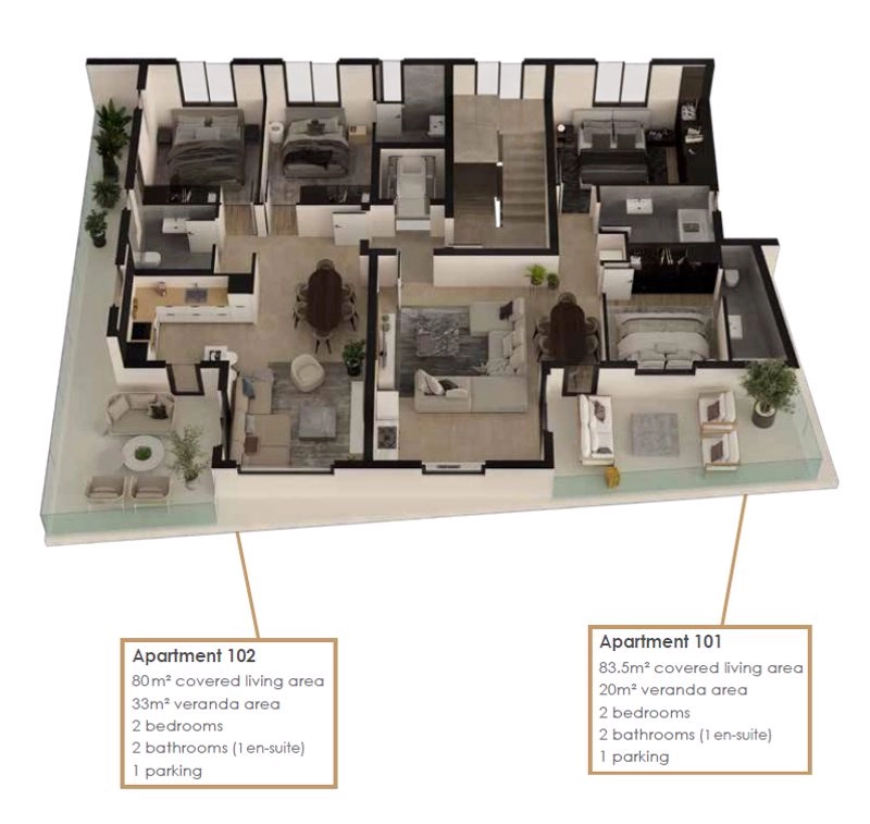 Two Bedroom Apartment For Sale in Larnaca Town Centre – Title Deeds (New Build Process) *** SPECIAL OFFER !! – Now includes full furniture and electrical appliances package !! *** Last remaining 2 Bedroom apartment !! – 101 Situated in the heart of vibrant Larnaca Ideally positioned, this deluxe building is home to just five elegant apartments, offering an elevated standard of luxury living and residential comfort. this project brings you a collection of modern two and three-bedroom apartments. Enjoy the perfect blend of convenience, style, and easy accessibility. This development is set to redefine luxury living with its unique aesthetics and deluxe lifestyle. TURNKEY READY - Master bedroom with ensuite facilities and fitted wardrobes - 1 Bedroom with fitted wardrobes - Open plan living – dining – kitchen area - Family bathroom - Fully furnished - Electrical appliances included - Air conditioning units - Double glazing - Thermal insulation - Photovoltaic solar panels - Optional security cameras - Optional alarm system - Entry phone system - Covered parking - Internal 80-83 m2 - Covered veranda 20-33 m2 - Storage 2-3 m2 - Communal fees TBC - Close to all local amenities - 5 Minutes to the sea - 6 Minutes to the Metropolis Mall - 11 Minutes the nearest beach - 17 Minutes to Larnaca International Airport - Suitable for Cyprus Permanent Residency - Subject to VAT - Energy Efficiency A Larnaca Larnaca is the home of Cyprus’ main International Airport, close to the Salt Lake area, a place where you can watch Swan’s and Flamingo’s that live in the lake. On its coastal seafront, the cafe’s and restaurants are peaceful. On the edge of Larnaca Bay the palm-lined seafront of Larnaca town bustles with cafes, tavernas, shops and bars. Historic charm is lent to the scene by its fortress castle, now used as the town’s summer cultural centre. Larnaca is an excellent base from which to get to know the central and eastern section of Cyprus, and its proximity to the International Airport and a number of luxury hotels that have been developed along its beautiful sandy beaches make this a popular holiday choice. Larnaca is the modern gateway to Cyprus, known for such sights as the beautiful St. Lazarus Church and leisurely Palm Tree Promenade. Work has now started on the vast project of the “Land of Tomorrow that will transform one of the largest areas of Larnaca, improving the image not only locally but also Cyprus at the international level. The Land of Tomorrow project will provide new and important investment opportunities in the areas of entrepreneurship, tourism, culture, innovation and the environment in Cyprus. ———— * Title Deeds (New Build Process) * Furniture & Electrical Appliances Included * Short Drive to the Sea & Beach * Suitable for Cyprus Permanent Residency * Subject to VAT * New Build * Energy Efficiency A Larnaca Town Centre Larnaca Town Centre County: Larnaca Sale Type: For Sale Ref #: KHX012N2/101