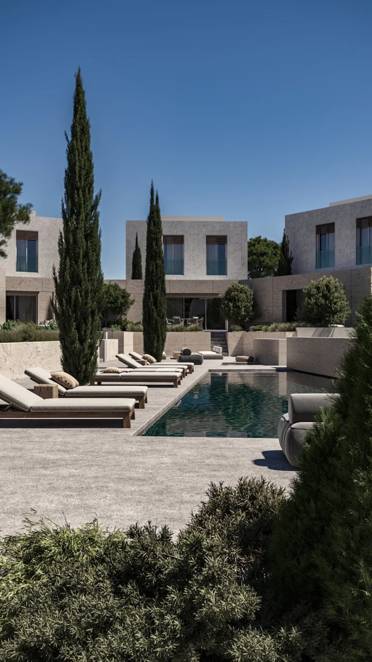 Each villa, thoughtfully crafted between 130–187 sqm, features 2 or 3 spacious bedrooms in both single-story and two-level layouts. Every home blends natural materials with bespoke finishes, creating a sense of effortless sophistication. Open-plan interiors flow seamlessly into expansive outdoor spaces with private swimming pools, jacuzzis, and landscaped gardens, embodying the essence of Mediterranean living.