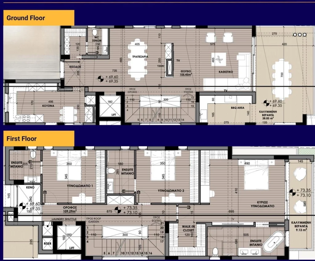 5 bedroom villa for sale in the area of Agios Tychonas, Limassol. This modern residence features spacious interiors, a harmonious combination of indoor and outdoor spaces, and views of the Mediterranean Sea. The house also has an office, an elevator, a sauna, and a roof garden. There is a barbecue area and a swimming pool on site. An alarm system is installed. Luxurious finishes and smart home technologies ensure a balance between everyday comfort and energy-efficient living. The villa is located just a few minutes from the city’s restaurants, shops and cultural centers.