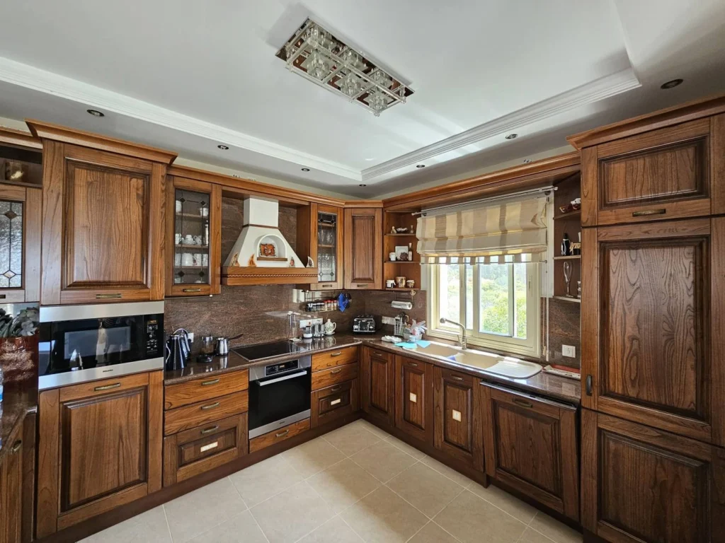 For sale a beautiful 5-bedroom custom-built villa with sea views. With easy access to all amenities and schools. A quiet residential place. Spacious living/dining room, high ceilings, large fully equipped kitchen, indoor garden area with pool and covered barbecue area overlooking the sea, kitchenette, study, guest toilet, laundry room, sauna. On the upper level there are 3 bedrooms, the master bedroom with bathroom and dressing room, 2 more bedrooms with bathrooms and access to a spacious terrace with panoramic sea views. On the lower level there is an additional living room with a separate kitchen and two bedrooms. Covered parking, large garden with fruit and ornamental plants. Double glazed windows, air conditioning, heating, (kerosene), alarm system. Located in a quiet area of Kissonerga.