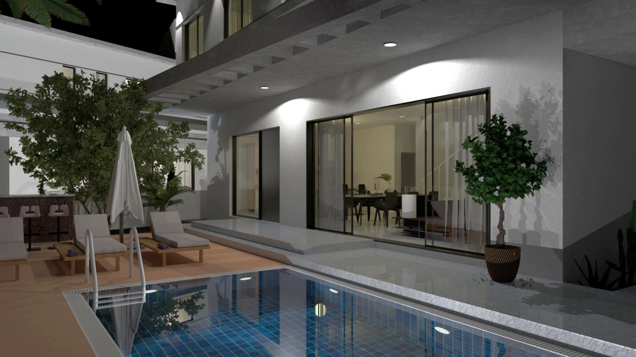 Designed in a sleek contemporary style, the villas feature clean geometric lines, panoramic windows, and refined finishes. These spacious two-story residences, available in 3- and 4-bedroom configurations, have been meticulously planned to provide an unparalleled sense of comfort and elegance. A standout feature is the private rooftop terrace, offering breathtaking sea views—an idyllic setting for relaxation and enjoying the gentle Mediterranean breeze.