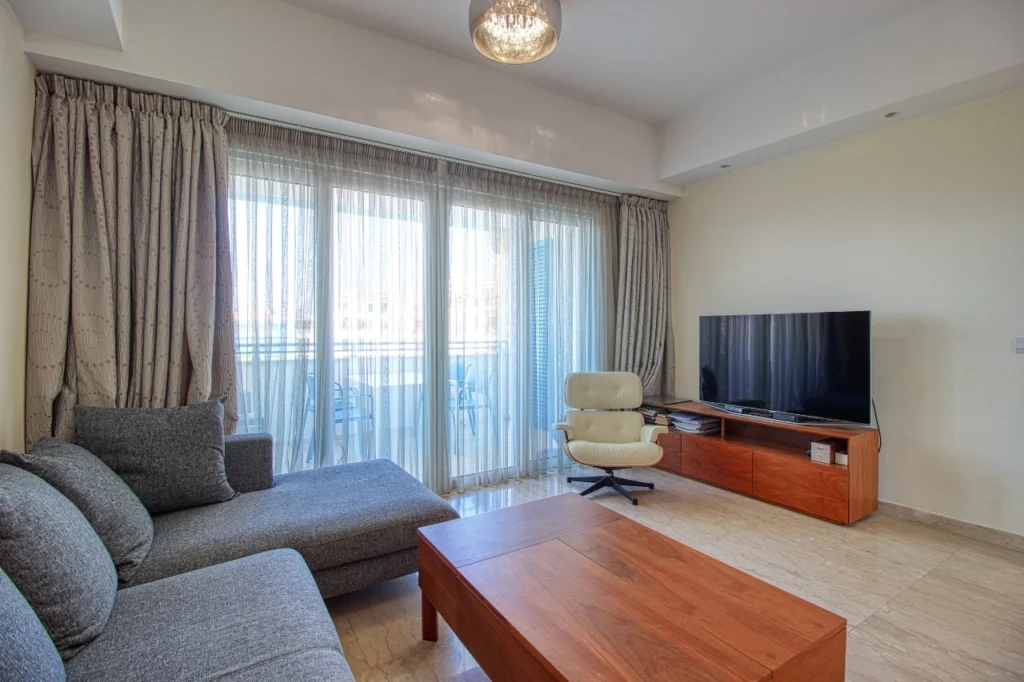 Luxury 1 bedroom apartment for sale in Limassol Marina. An exclusive coastal real estate project that combines first-class residential real estate, a full-service harbor, shops and restaurants in the heart of the city. The beach with turquoise water and golden sand is just a few meters away. The apartments are fully equipped with upholstered furniture and household appliances. The complex has a communal swimming pool with a relaxation area.