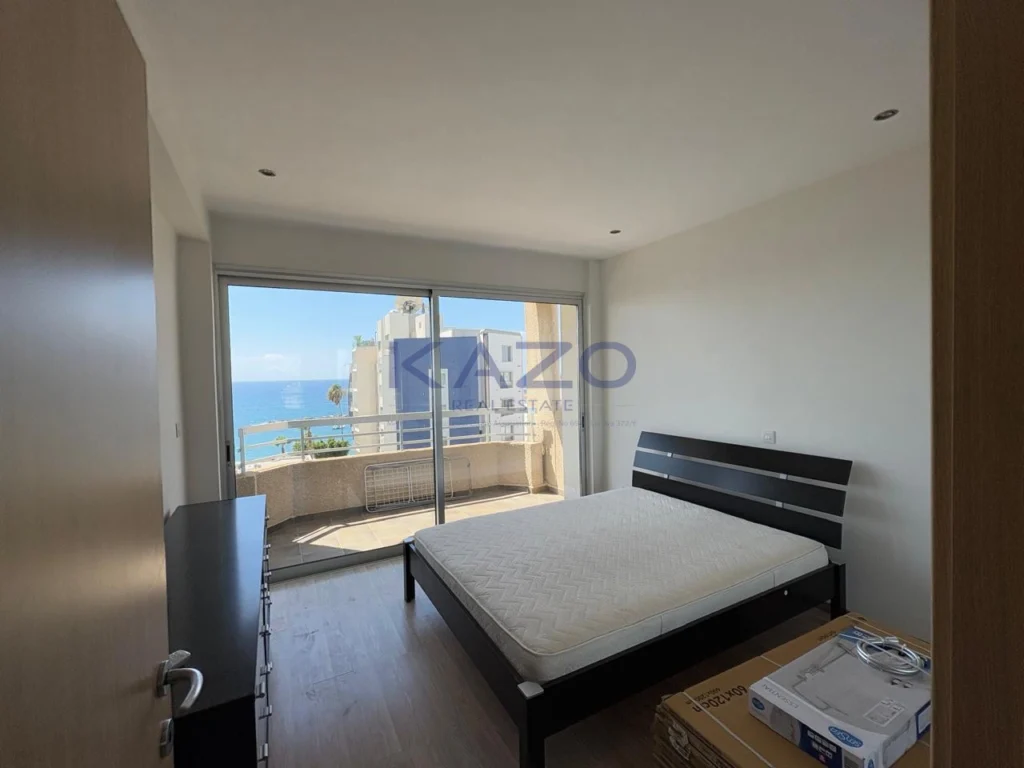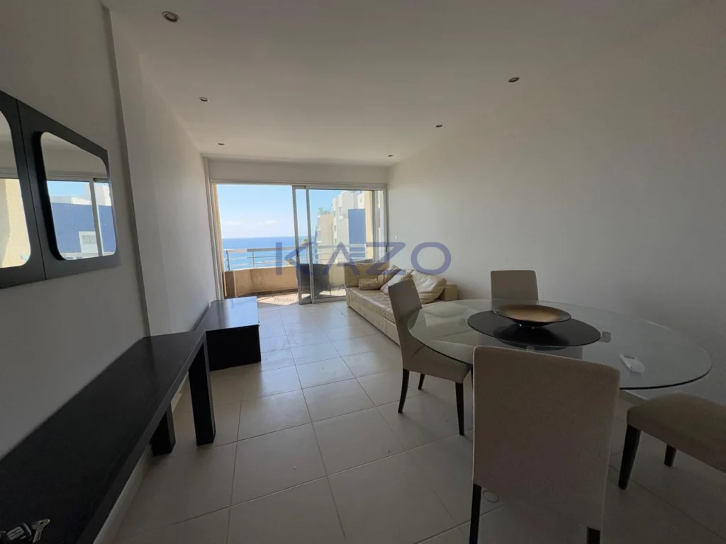 For sale is a spacious two-bedroom apartment located on the fifth floor of a well-maintained building with an elevator. This resale property offers 85 square meters of comfortable living space and comes fully furnished, making it move-in ready for a new owner. The apartment features one modern bathroom, an open-plan living and dining area, and a fully equipped kitchen. Large windows fill the space with natural light and offer stunning sea views. Step out onto the balcony to enjoy tranquil seafront living every day.