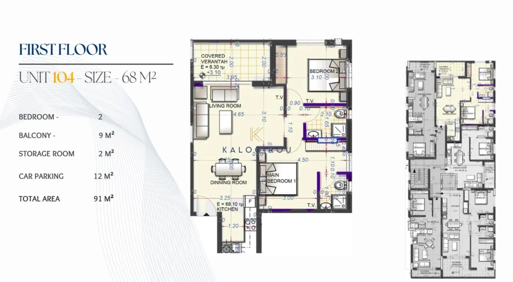 The project consists of 10 x one-, two- bedroom apartments. All apartments have private covered parking and storage room. Moreover, three top floor apartments enjoy private roof garden.