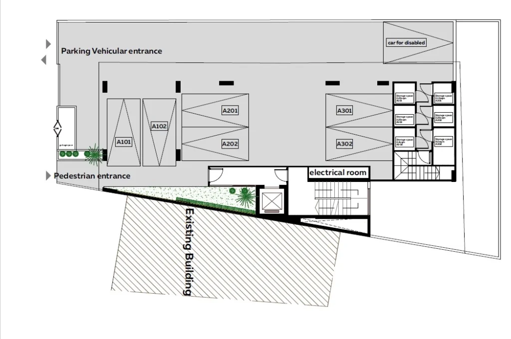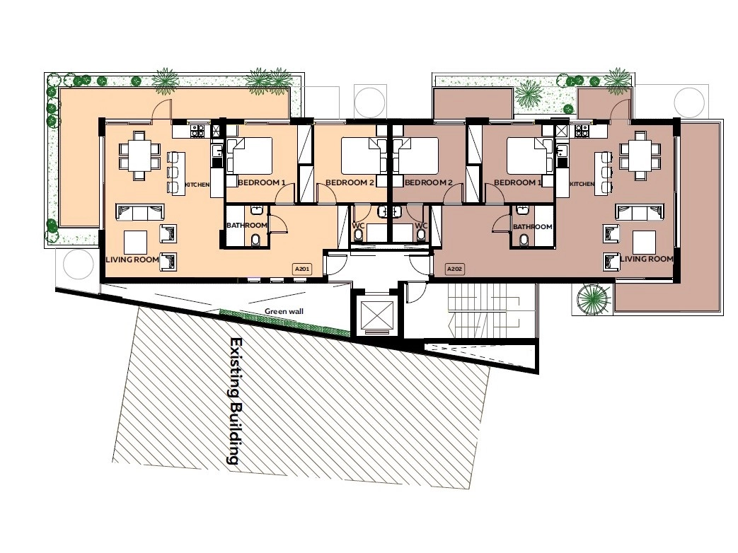 For sale 2 bedroom apartment in a dead-end street next to the Ajax hotel, Limassol. Convenient location – near pharmacies, supermarkets, banks. The building consists of 3 floors and a roof garden. The apartments on the 1st and 2nd floor have a 30m2 common barbecue area. There are also solar panels for each apartment to save electricity. The apartment has an entrance hall with wardrobes, 2 bedrooms (one has its own bathroom) and a living room-kitchen with a common layout. An additional bathroom is located on the roof next to the barbecue area. There is a parking lot and a storage room.