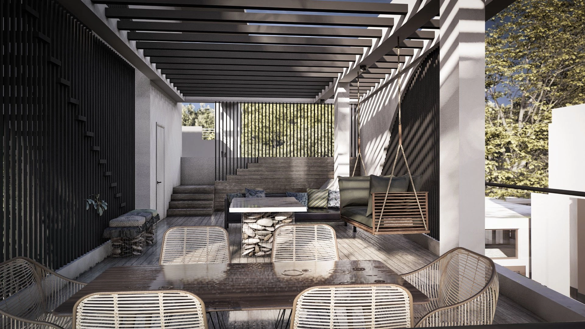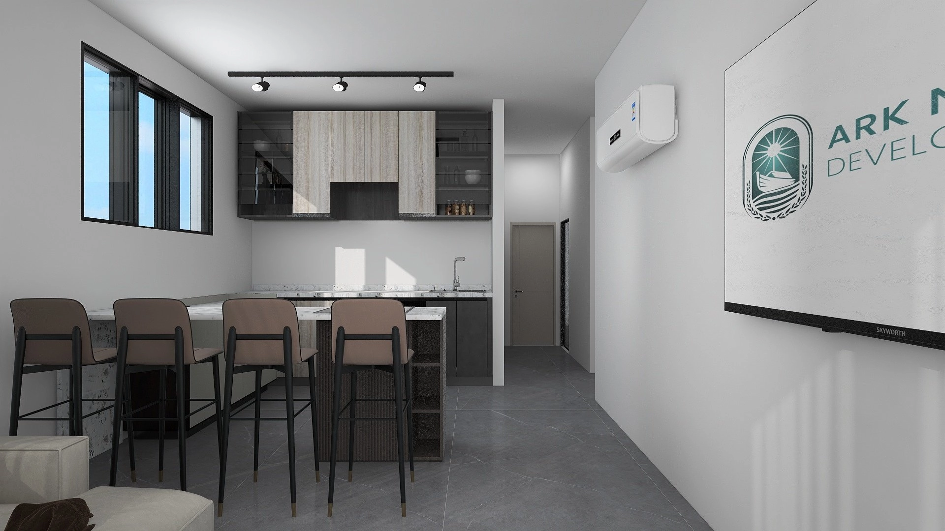The master bedroom features an en-suite bathroom, while two additional bedrooms provide flexibility for family members or guests. Each room has been designed to maximize natural light and privacy, creating an ideal environment for relaxation and productivity.