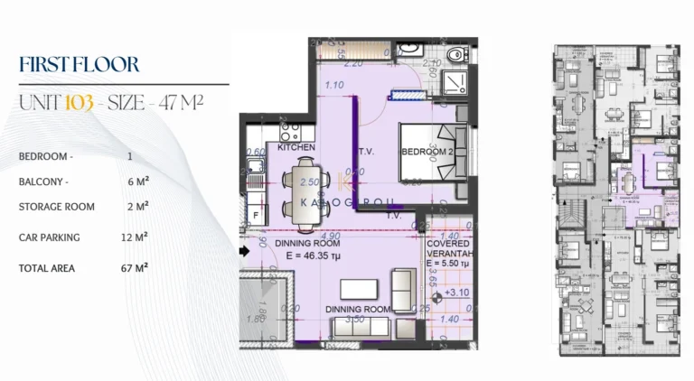 Top Floor, One Bedroom Flat with Roof Garden for sale in Kiti area, Larnaca. The property is located in a quiet and picturesque neighborhood near Kiti Village centre. It offers the perfect blend of peaceful surroundings and community convenience. A plethora of amenities and services are at a close distance, such as supermarkets, Restaurants, bakery etc. It is a short drive to the beach, Larnaca International Airport and Larnaca city center.