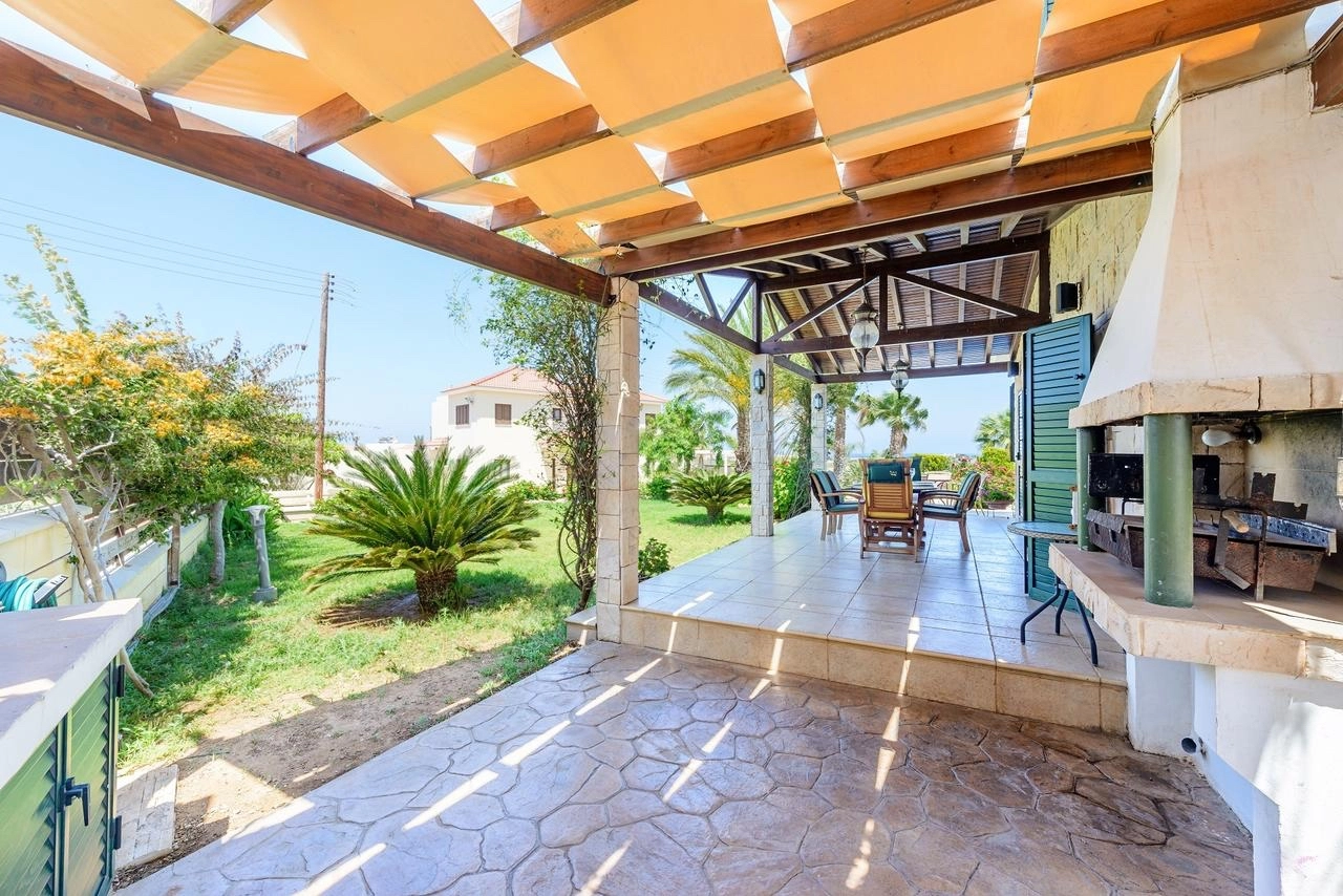 Villa of 250 m2 for sale in Protaras area, Famagusta city. This spacious 5-bedroom villa includes 4 bathrooms, a living room, a kitchen, a game room, a storage room, balconies and a covered relaxation area by the pool. The villa is fully furnished and equipped with an air conditioning system in all rooms, a fireplace, an alarm system, a 6 kW photovoltaic system, as well as all the necessary amenities for a comfortable stay. The property is located just a 6—minute drive from the beach, on a plot of 1,370 m2 with a well-maintained garden, a 10 × 6 m private pool and a shaded pergola – an ideal place for outdoor recreation and entertainment.