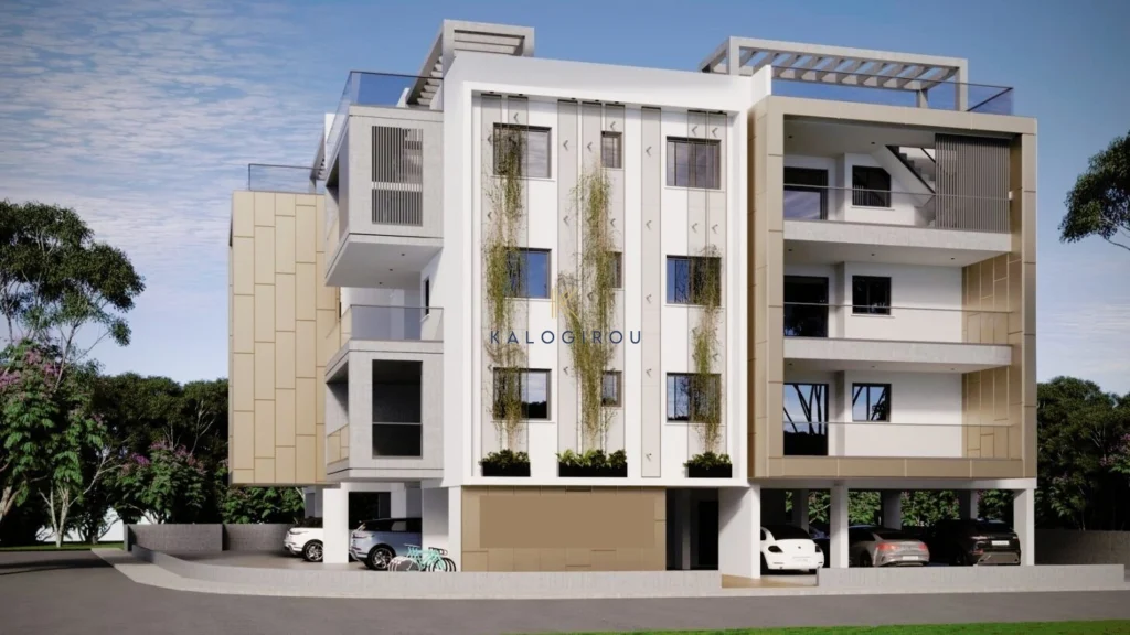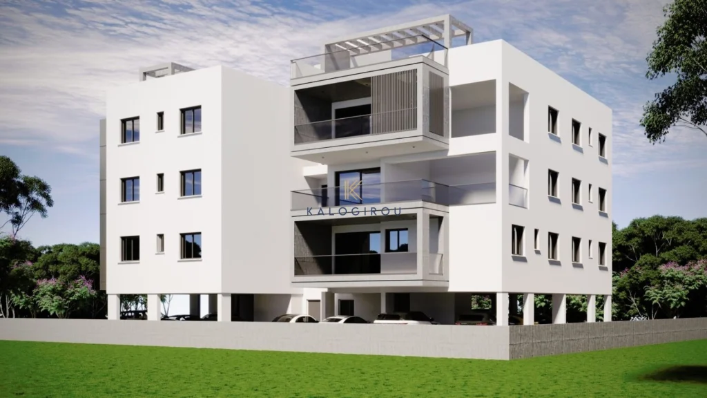 Top floor apartment for sale in Larnaca, Aradippou area. The apartment has internal covered area of 80 sq.m, consists 2 bedrooms, open plan kitchen, living and dining area, 1bath, 1 shower en-suite, 2 wc, covered parking, storage room and 21 sq.m of covered veranda and 35 sq.m roof garden.