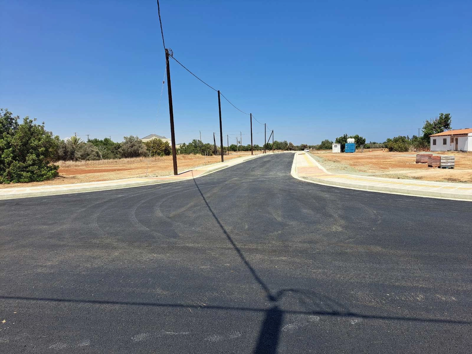 A divided residential plot for sale in Mazotos, Larnaca. The facade is adjacent to a new paved road. Communications have been conducted.