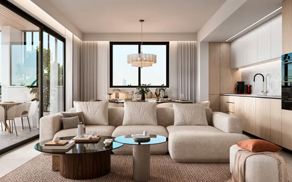 This modern two-bedroom apartment offers a bright and comfortable living space with a stylish and functional layout.