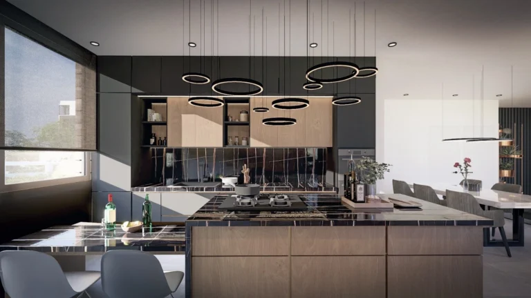 Each 3-bedroom apartment showcases superior craftsmanship, high-quality flooring, and modern furnishings. With energy-efficient systems, climate control, and double glazing, every home ensures maximum comfort throughout the seasons. The soft contemporary design, accentuated by natural tones and elegant lighting, creates an atmosphere of quiet sophistication.