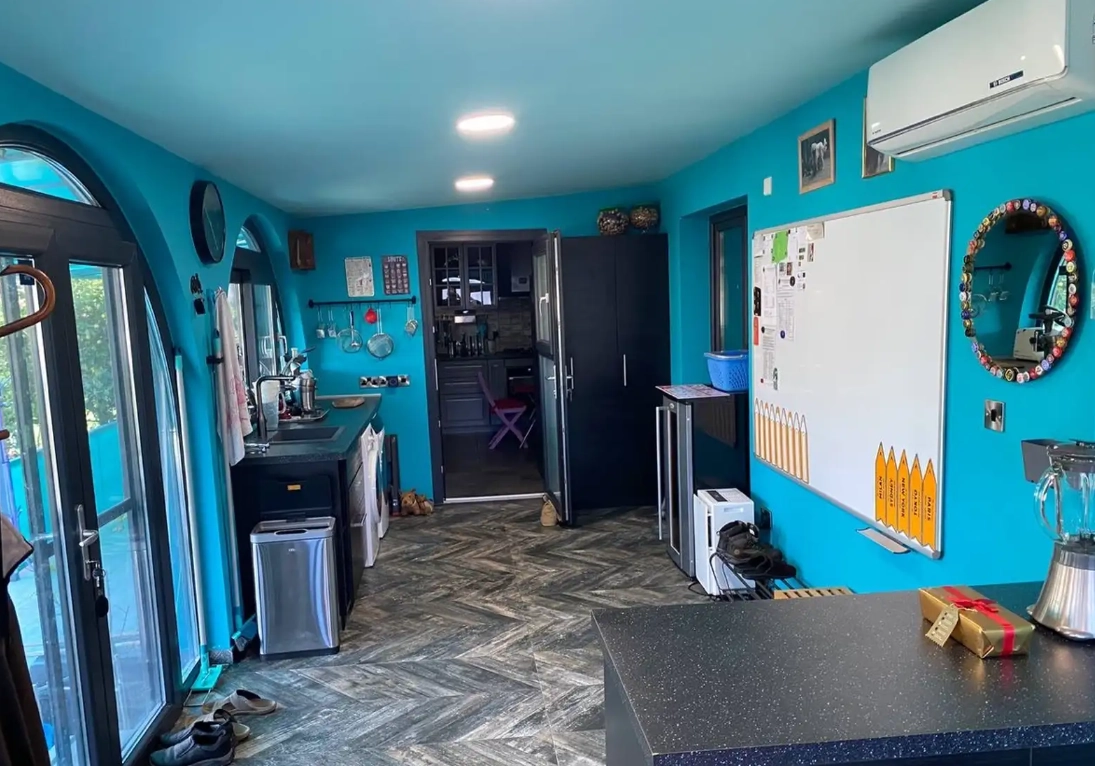 Luxury detached country house bungalow with no close neighbors with fruit trees garden 13,000 sg meters, Phinikaria (5 minutes from Germasoya roundabout of Limassol). Furnished by modern and antique furniture, with all equipment and accessories, ready for immediate accommodation and living. 3 bedrooms, dining room, lounge, kitchen, covered and glazed veranda, 2 toilets, one with shower another with bath, Grohe plumbing with thermostats,double Rehau windows with remote control, electric blinds, invertor acs in all rooms, Italian wood burning fireplace, washing, dryer, dishwasher machines, four doors and vine fridges, gas heater for water in winter, tank with computer processor in summer, garden furniture, gas barbecue, grills, large separate storage room, barn for instruments and garden equipment.