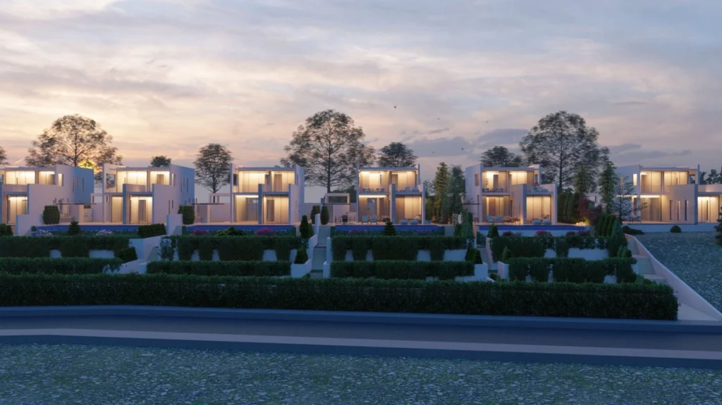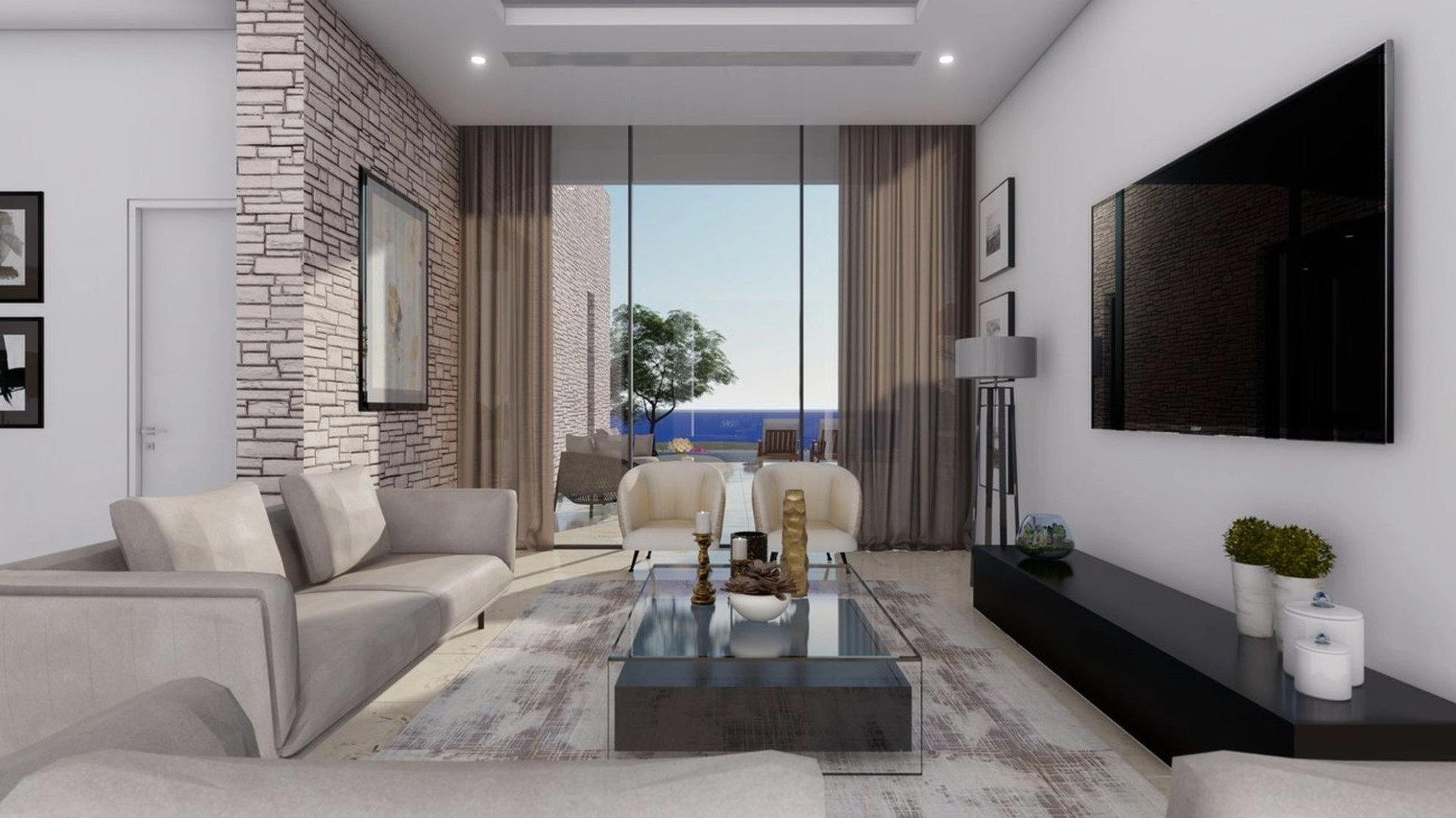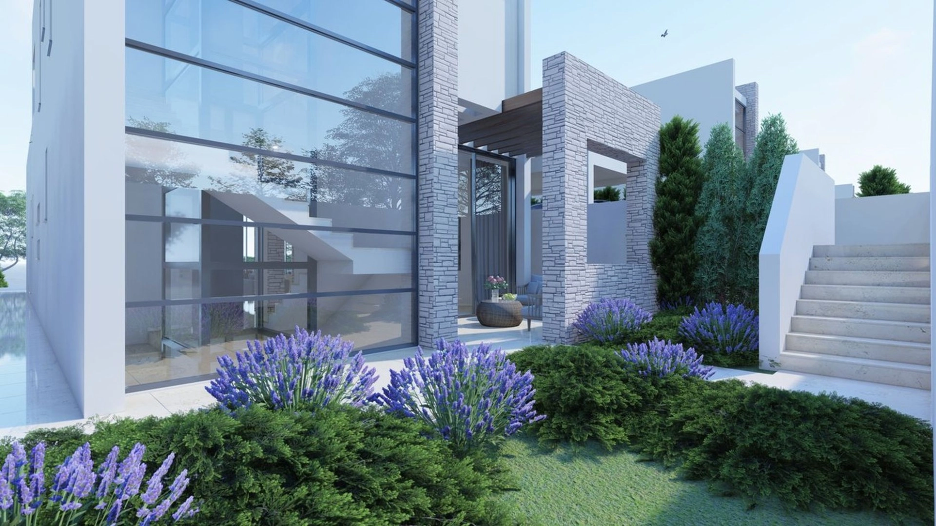 The project is set in a spectacular panoramic location offering sea views of one of the most beautiful and unspoiled areas of the island. This luxury project consists of 9 villas with 3 bedrooms and a private pool each, located within a convenient 5-mins walking distance from the nearest beach. The interior of each villa is organized into two levels. On the ground floor, there is the main living area with large floor-to-ceiling windows, a well-equipped open space kitchen, and a welcoming dining area. The three bedrooms with en-suite bathrooms are spread on the ground and first floor. The en-suite dressing room and walk-in closet serve the modern needs for functionality and comfort. The Project has EPC certificate with “B” Energy Efficiency Rating.
