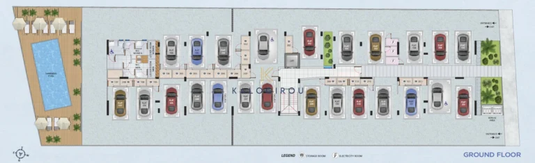 Apartment for sale in Oroklini area, Larnaca. It is on the first floor & consists of an open plan kitchen, living, dining area, a main shower room, one bedroom and covered balcony. The apartment has parking lot and storage space on the ground level. Additionally, the residents have access to the complex’s communal swimming pool.