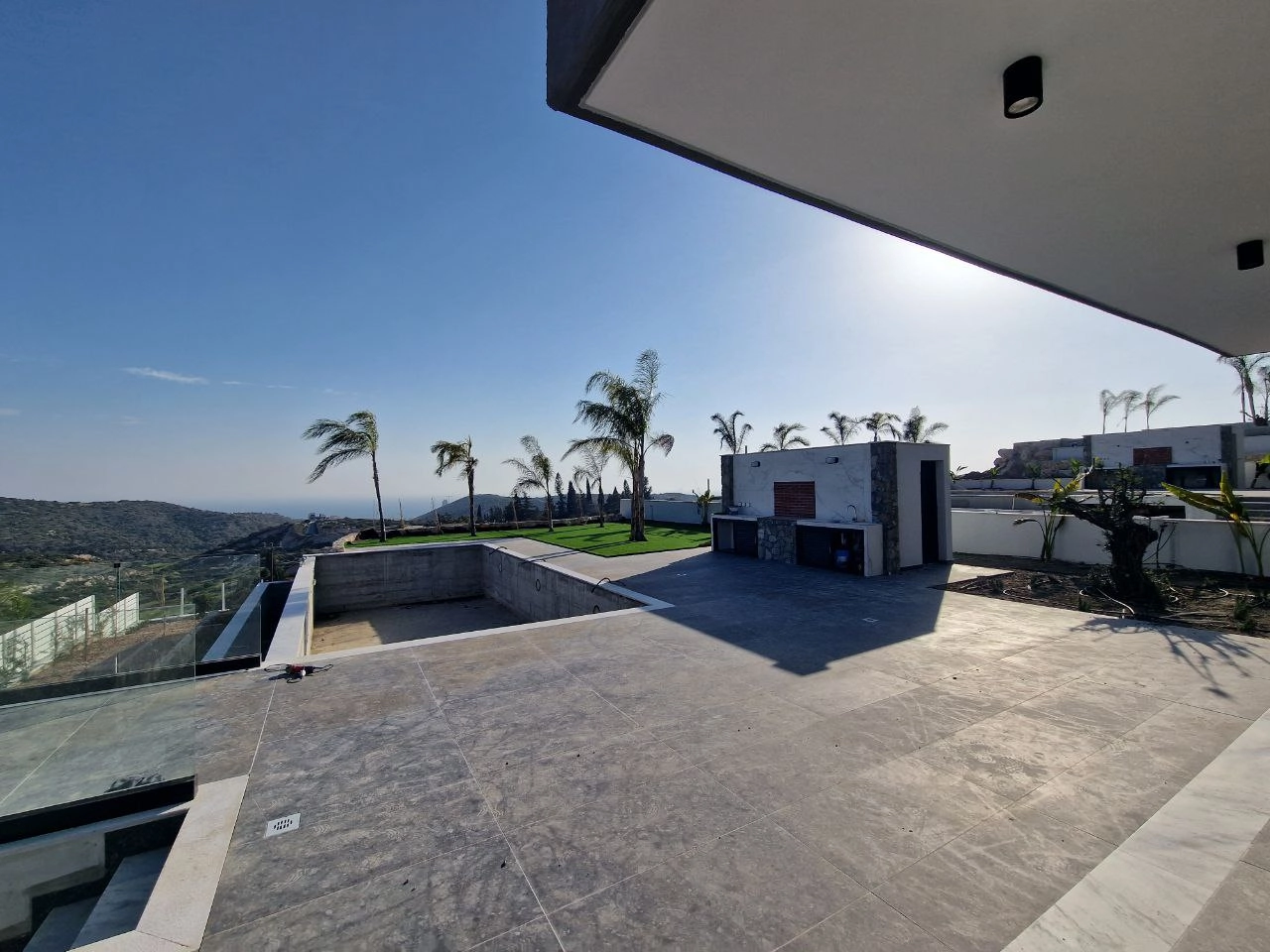 For sale a house in Parekklisia, Limassol. Four bedrooms, four bathrooms and guest bathrooms. Spacious kitchen-living room, beautiful fireplace, roof garden, garage, gym, elevator, swimming pool and storage room. Central heating, elevator. Roof garden with barbecue area and stunning panoramic views. It is possible to install solar panels that will generate their own electricity. Unobstructed sea view from every room. The villa is located in a secluded natural area, but at the same time in easy access to the main highways leading to the center of Limassol, other cities of Cyprus.