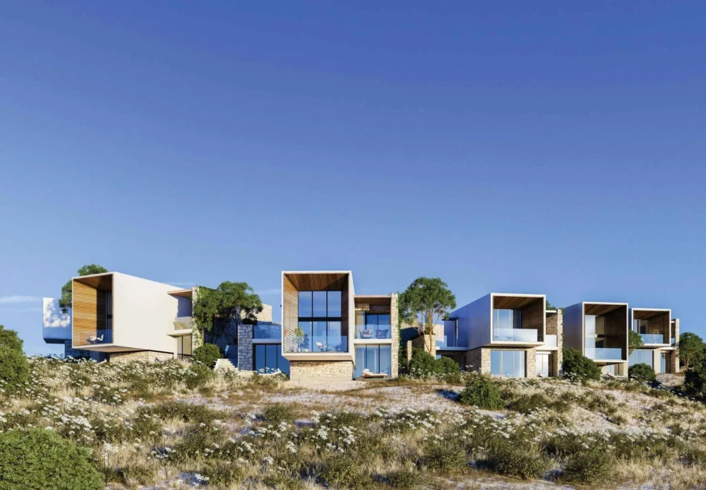 Luxury 3 bedroom villa for sale in a new residential complex in Tsada area, Paphos. This is a magnificent residential complex consisting of two- and three-bedroom villas located on a hilltop with spectacular views of the sea and the Troodos mountain range. The modern design is combined with traditional architecture, with characteristic courtyards, private gardens and swimming pools.