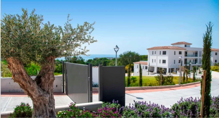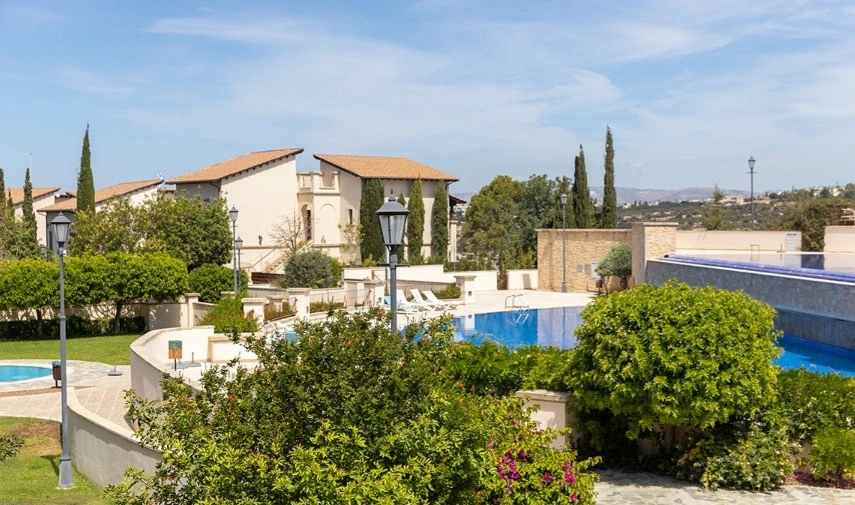 For sale is a beautiful 2-bedroom ground floor apartment situated in a large well-maintained complex in Aphrodite Hills (Kouklia, Paphos). This splendid luxury apartment is located in the beautifully landscaped Apollo Heigts, within close walking distance to the free-form main communal swimming pool. The property is on the ground floor and is tastefully decorated in neutral tones with contrasting flashes of colour on the soft furnishings and has modern fixtures and fittings throughout. French doors open out to the outdoor dining terrace and extensive private garden. Internal covered area of the apartment is 97 sq.m., covered verandas – 19 sq.m., uncovered verandas – 29 sq.m. This property has a modern kitchen which comes complete with all kitchen appliances. All bedrooms feature attractive parquet floors with fitted wardrobes and bedside cabinets. The screened, landscaped, garden at the side is planted with trees and aromatic shrubs. This fantastic property is conveniently located within walking distance of the Village Square, with its array of shops and restaurants, the Retreat Spa, golf clubhouse and tennis academy. Uncovered parking space. Title deed.