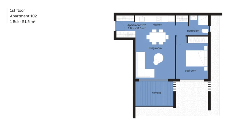 The development features a 4-story building with elegant architecture and facilities that promote an active and balanced lifestyle — including spaces for sport, work, and leisure. Built according to bioclimatic design principles and A-class energy efficiency standards, it offers exceptional quality, sustainability, and long-term value.