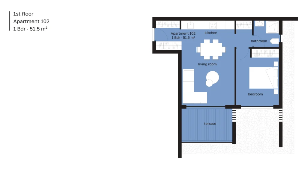 This stylish one-bedroom apartment is part of a modern residential development located in the heart of Limassol’s fast-growing business area. Designed with a perfect balance of comfort and functionality, it’s ideal for professionals or couples seeking a contemporary home that combines work and relaxation.
