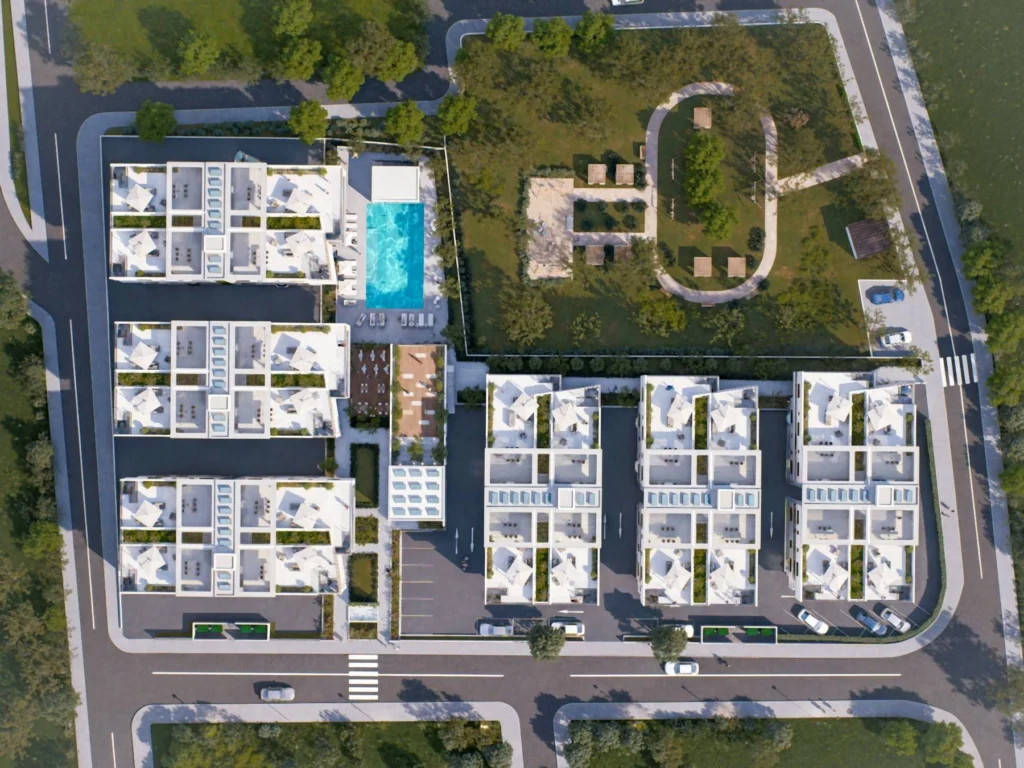 In the heart of Pafos, a new residential development introduces a modern vision of everyday resort living. Surrounded by landscaped gardens and open green areas, it creates a calm, refreshing atmosphere just minutes from the city center, the seafront, and the Mall of Pafos.