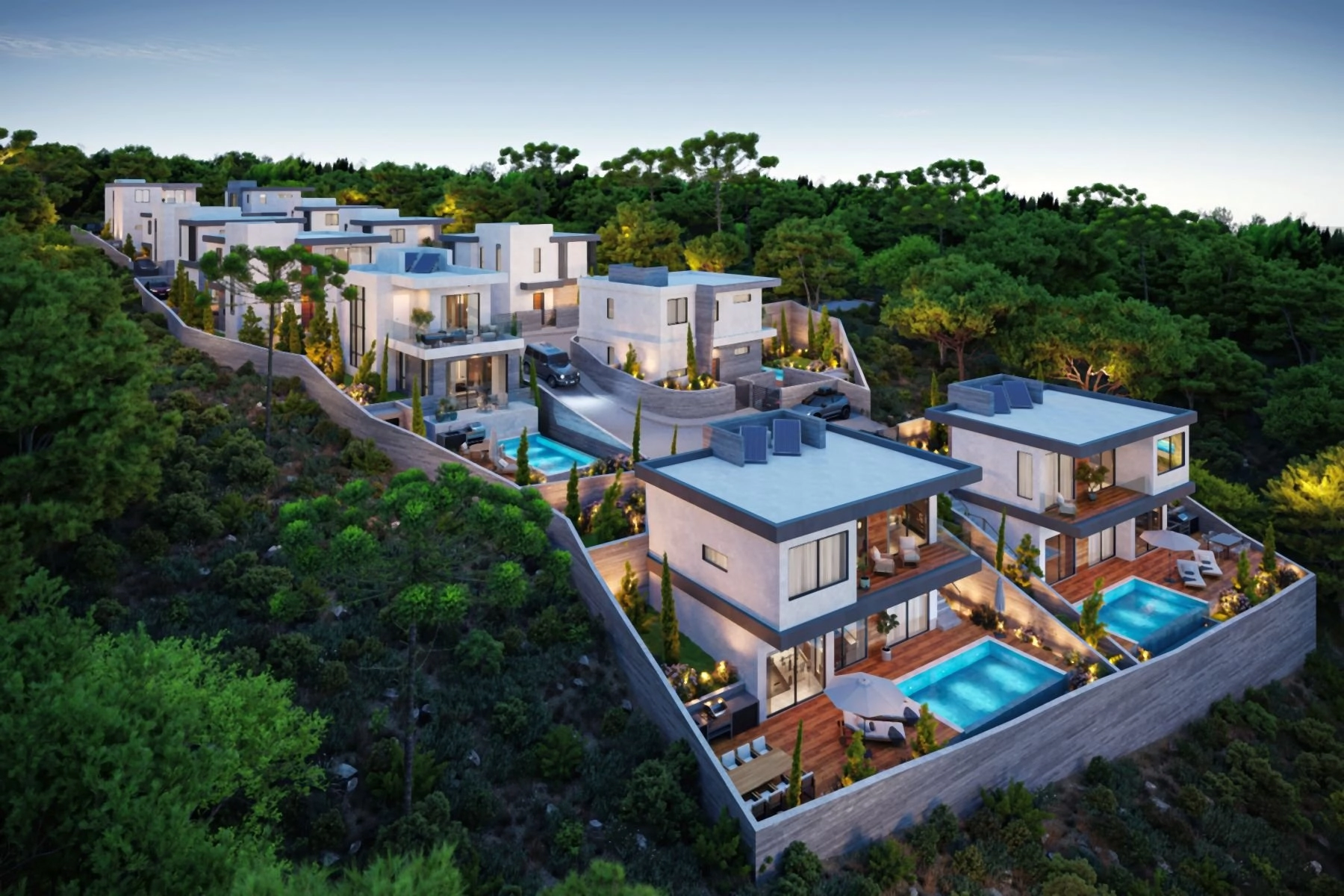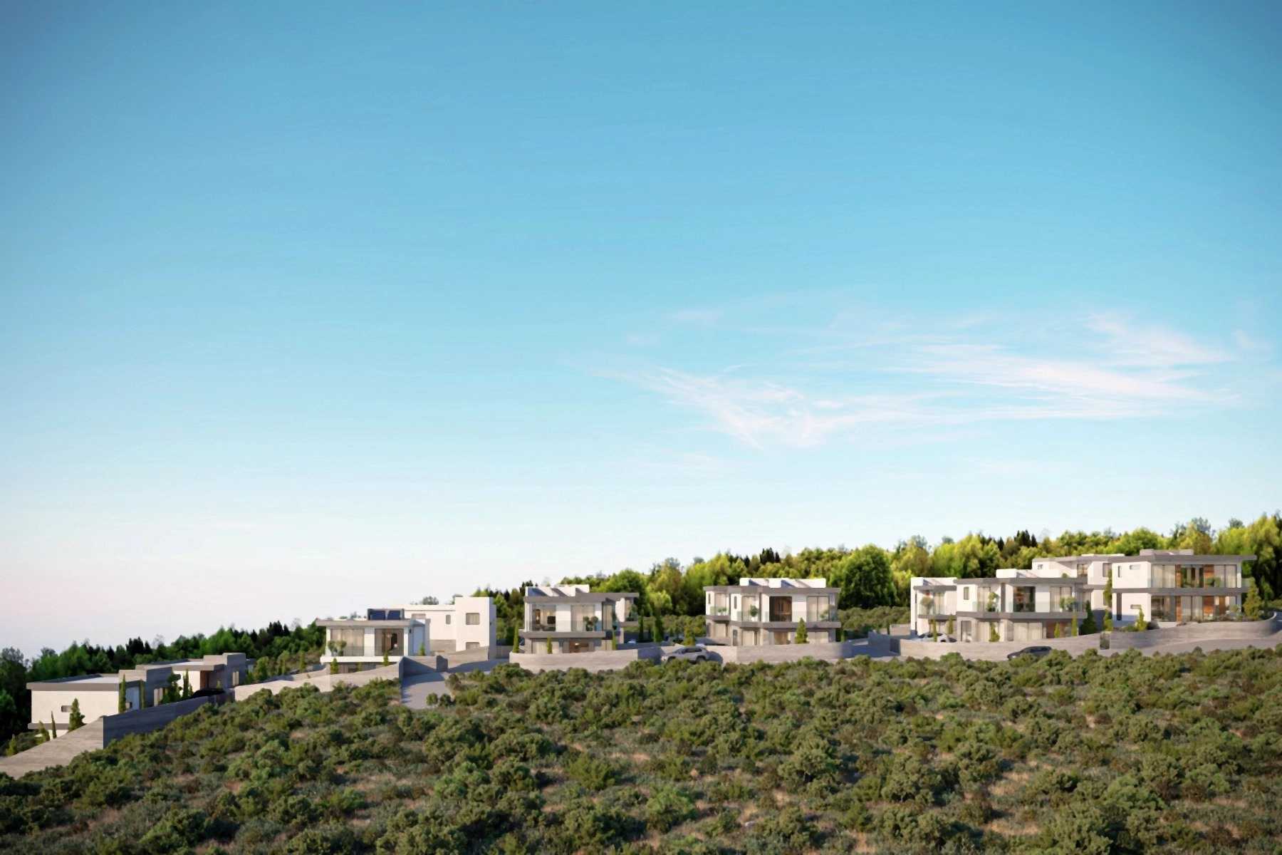The location offers the perfect balance of serenity and convenience — only a short drive from the city center, international schools, shops, and the coast. Energy-efficient construction, photovoltaic provisions, and customizable interiors add a personal touch to each home.