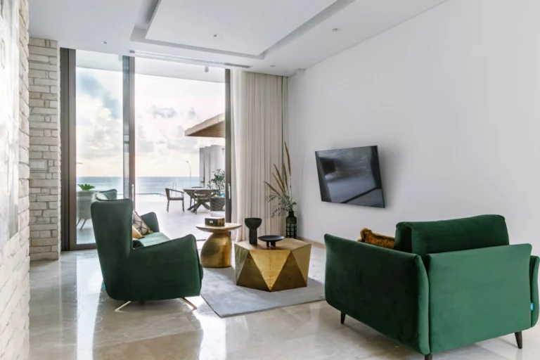 Reference ID: #21694Price details: €5,000,000Providing absolute privacy and ultimate style and relaxation, the spacious open plan lounge, has been tastefully decorated with modern furnishings. Each bedroom is en-suite, spacious and comfortable. For that extra luxury, the master bedroom offers the additional indulgence of a Jacuzzi with a view of the ocean.The modern fully equipped kitchen of our villa gives one the delight in creating culinary delicacies taking advantage of the modern appliances and equipment. Leading outdoors, on the right side of the pool, one may walk a few steps down to find the private garden with direct access to the beach.The Fourth bedroom of this deluxe Villa including as well as the sauna are amazingly positioned and found literally underneath the swimming pool. On the ceiling of both rooms, one feels as if they are in their own private water world, as the large port holes in the ceiling are in actual fact the ground of the swimming pool.Wine and dine your guests in the evenings making the most of the built barbecue area captivating yourself in the fascinating views. The swimming pool conveniently offers bar stools (within the pool) allowing one to enjoy a drink without actually getting out of the pool. Whether you are just resting on the terrace beside the amazing overflowing horizon pool or just enjoying a drink in the outdoor Jacuzzi.Air Condition AvailableBarbecueInfinity PoolJacuzziParkingPrivate GardenPrivate PoolSaunaUnder Pool Bedroom