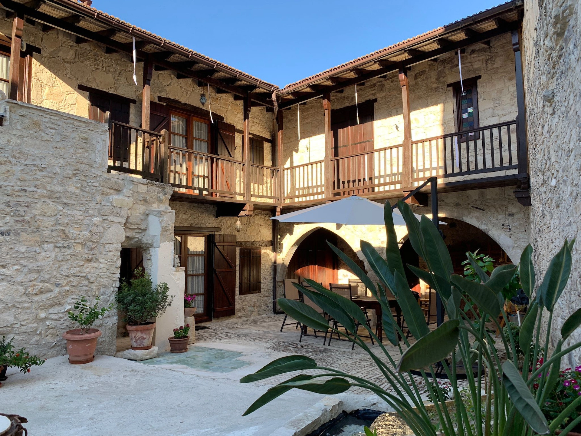 The house is located in the centre of Omodos village, a heritage-protected area known for its cobblestone alleys, wine culture, and beautifully restored architecture. With its traditional courtyard, garden area, and mountain view balconies, this property reflects the timeless character of Cypriot village life while offering all modern amenities.