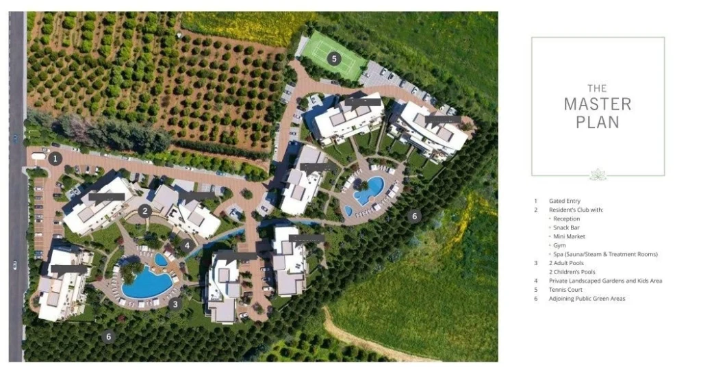 The community is located just outside central Limassol, in a serene countryside setting that offers quick and easy access to the city’s amenities, beaches, and highway connections.